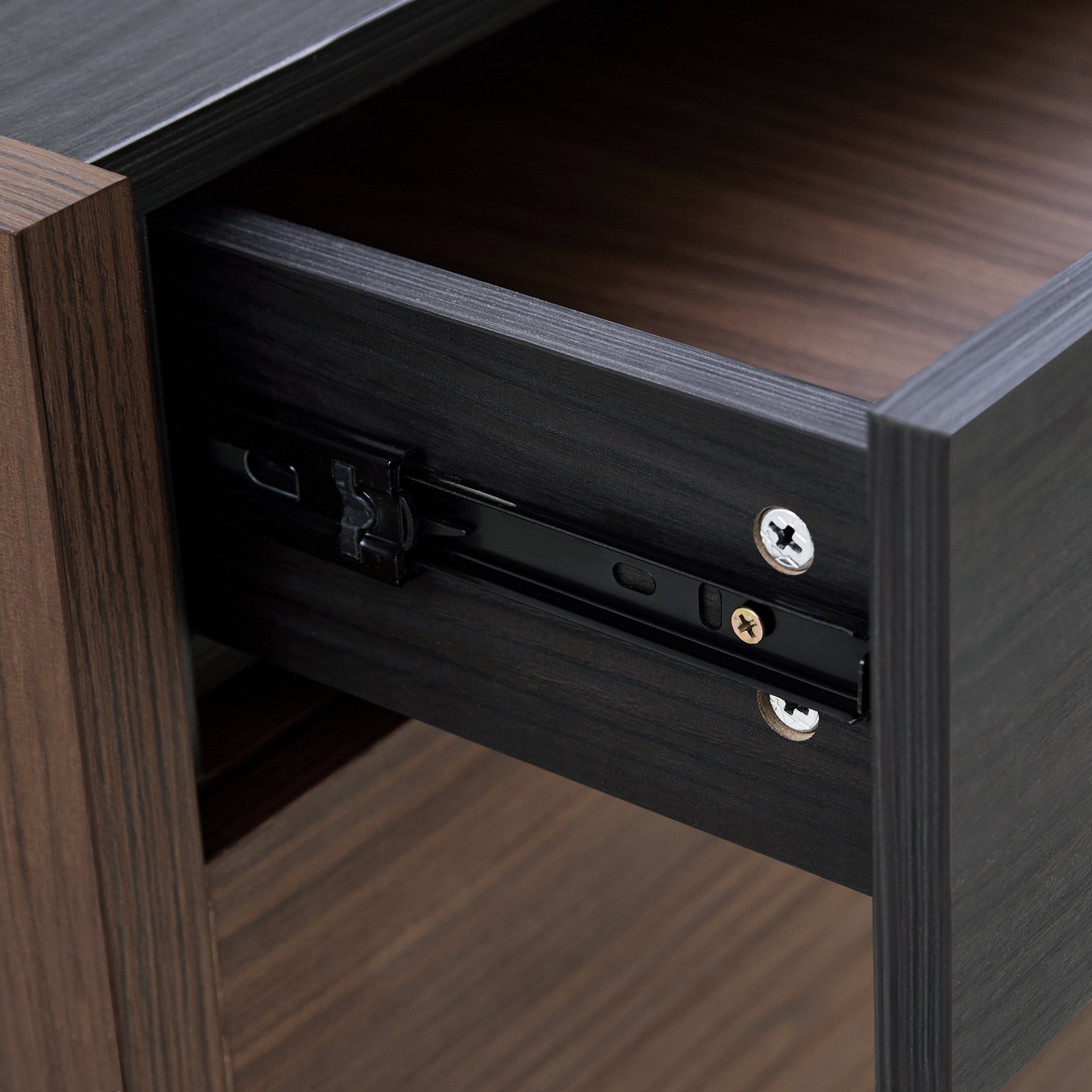 • Minimalist Two-tone Design: Combines black oak and walnut wood grains, offering a simple yet elegant look.