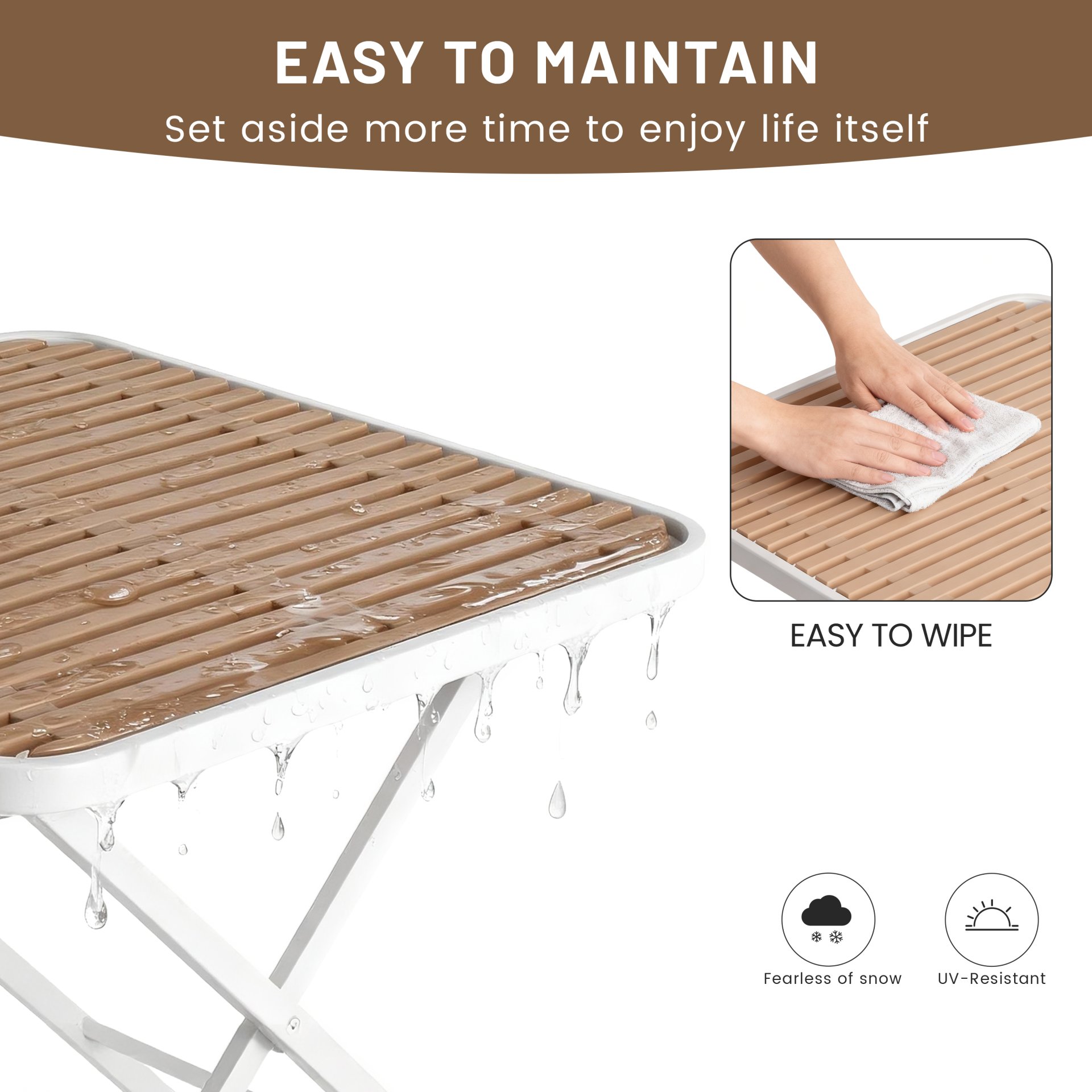 • Durability: Powder-coated metal table legs can withstand wind, rain, and humid environments without fading. The tabletop is made of polypropylene, which is stain-resistant, wear-resistant, and UV-resistant (suitable for over 17,520 hours of outdoor use).