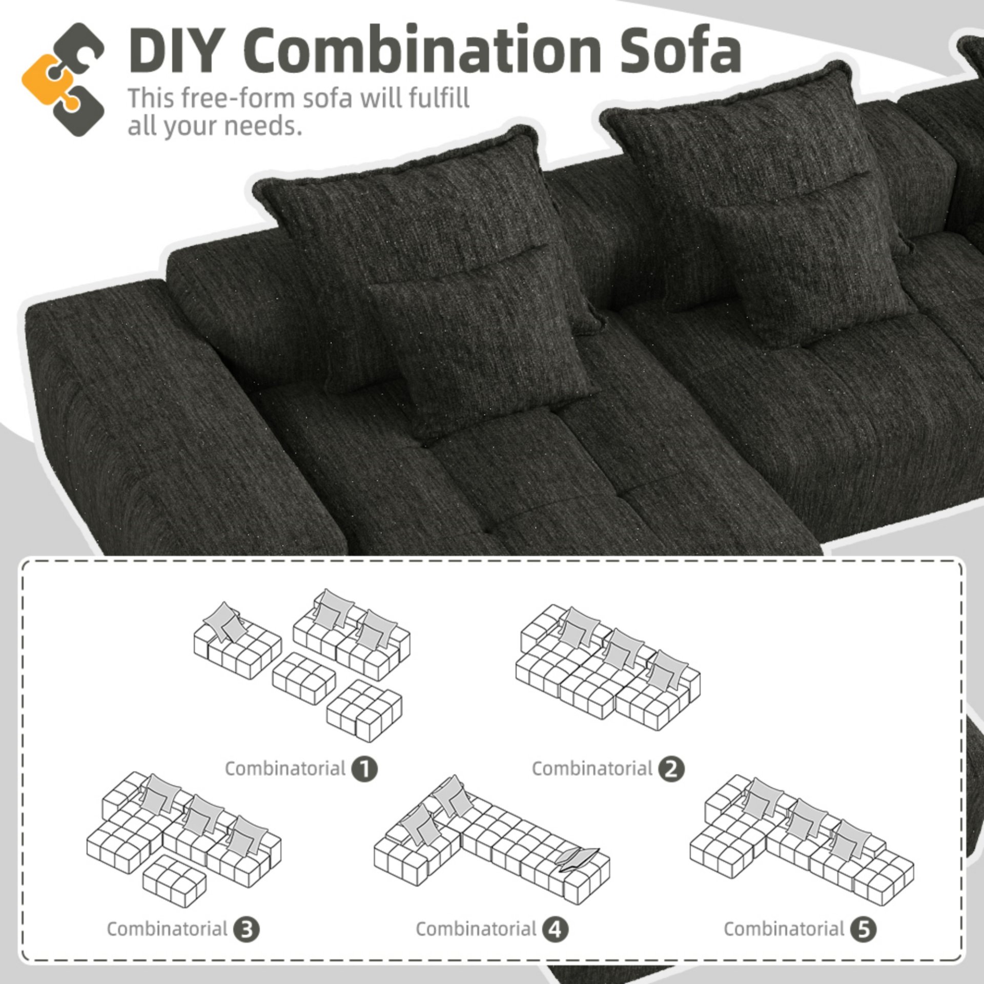 • Modular Flexibility: Configure into 2-seater, 3-seater, 4-seater or more; create over 30 combinations with arm units; personalize to suit any space.Just need a bit idea then you can spire your living room. You are the best designer for your home.