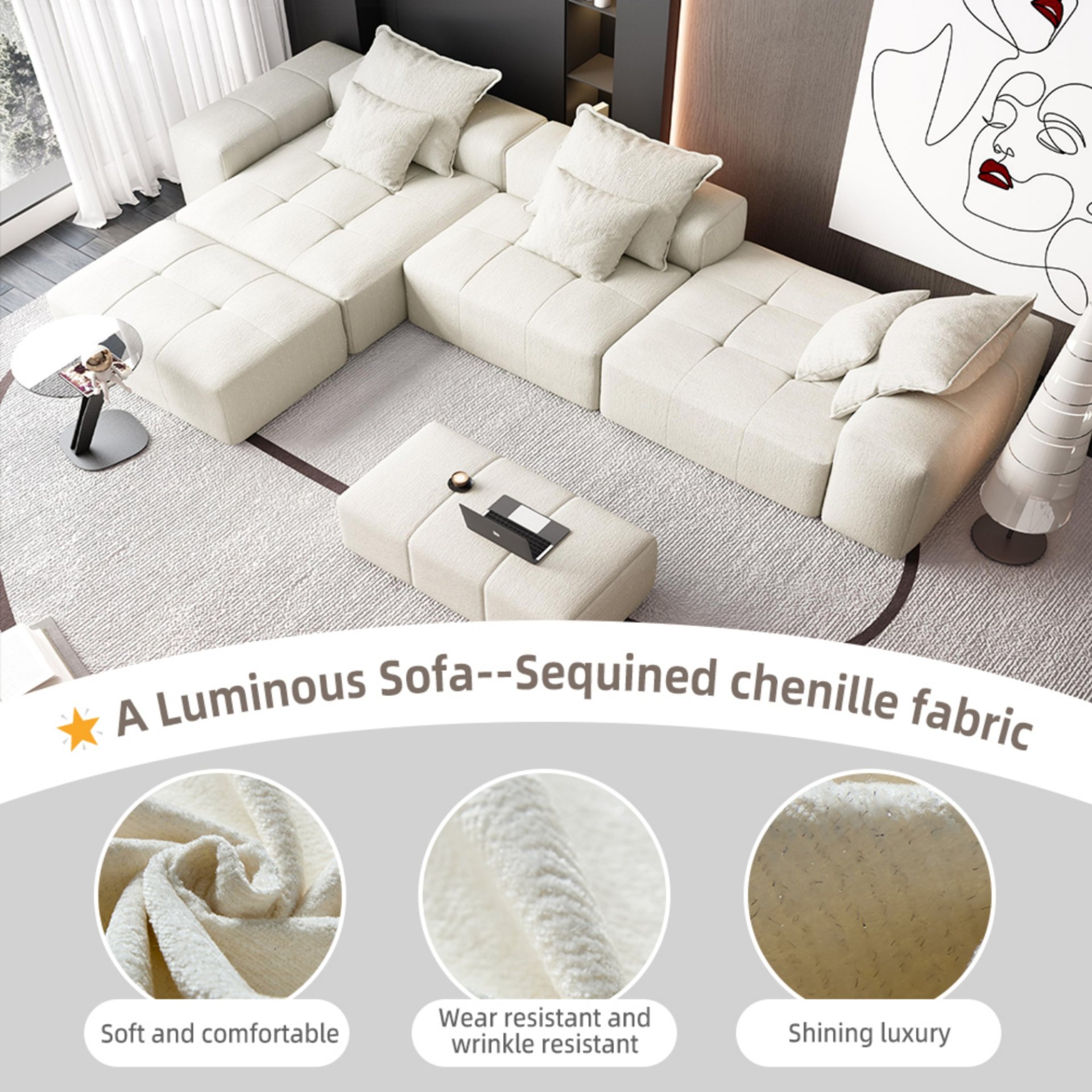 • Modular Flexibility: Configure into 2-seater, 3-seater, 4-seater or more; create over 30 combinations with arm units; personalize to suit any space.Just need a bit idea then you can spire your living room. You are the best designer for your home.