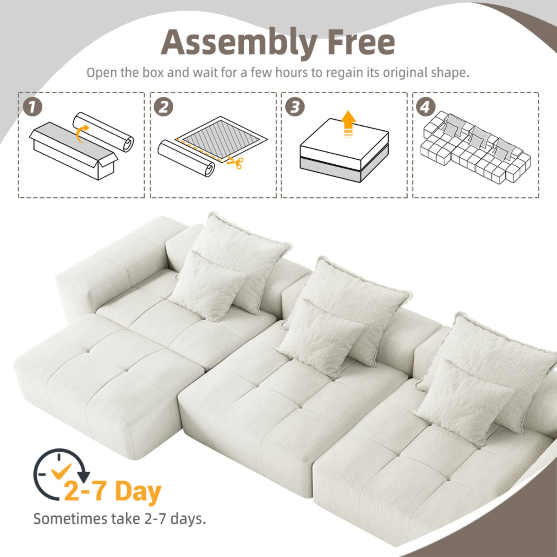 • No installation required: We are well aware of your valuable time, so this sofa features a convenient design that does not require assembly. Just take out the packaging, pat each part to make it bounce back and fluffy better, saving time and effort.