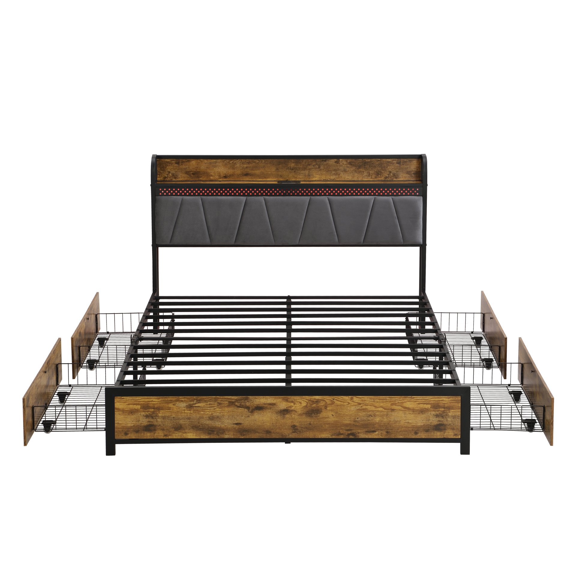 • Charging Convenience: The headboard includes 2 outlets and 2 USB ports, keeping your devices powered up and within easy reach.