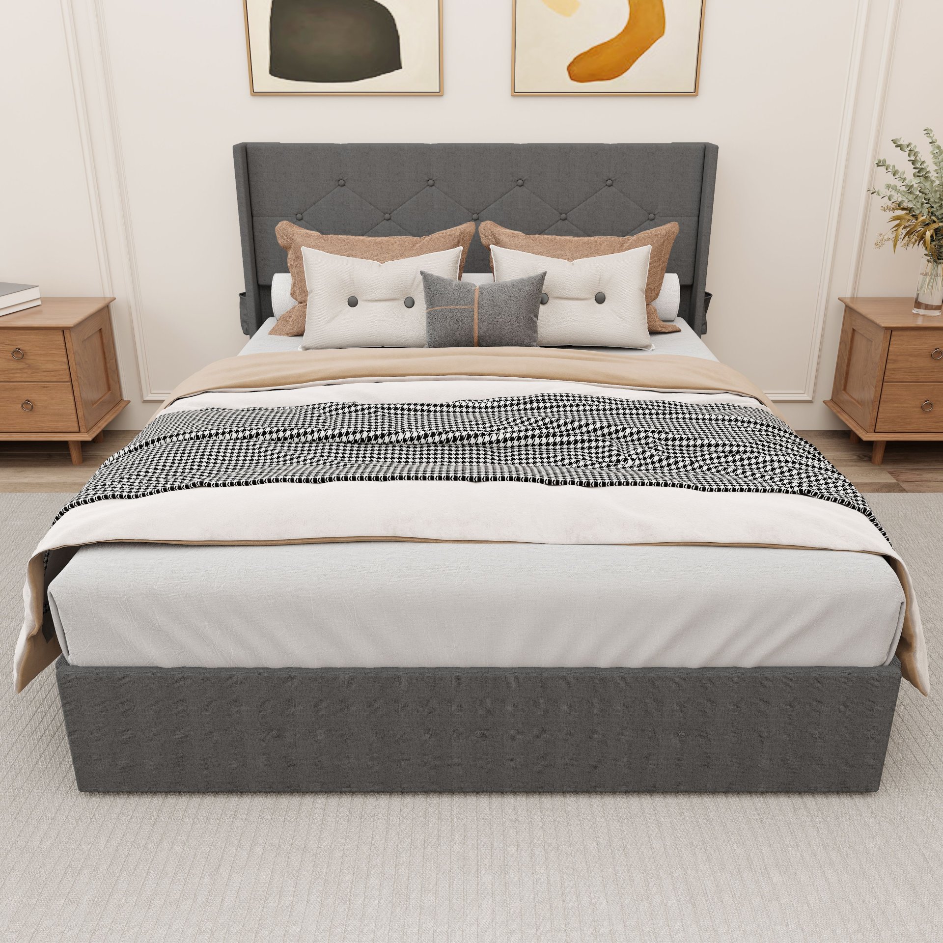 • Elegant Design with Functional Aesthetics: Features a contemporary horizontal channel headboard with a chic wingback design.