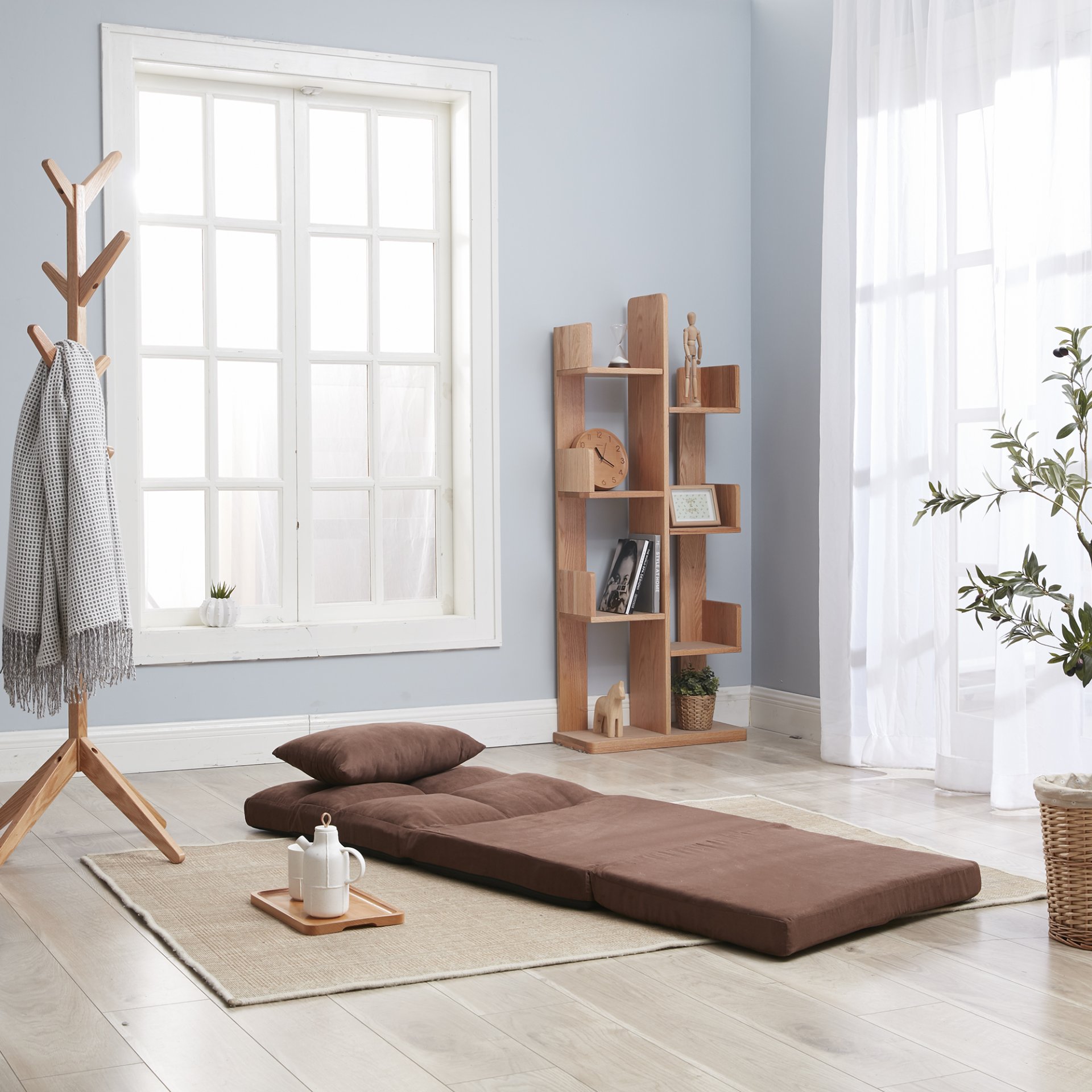 • Dual-Use Sofa and Bed: Folds into a floor sofa or flattens into a mattress-style bed; provides flexibility in compact living spaces.