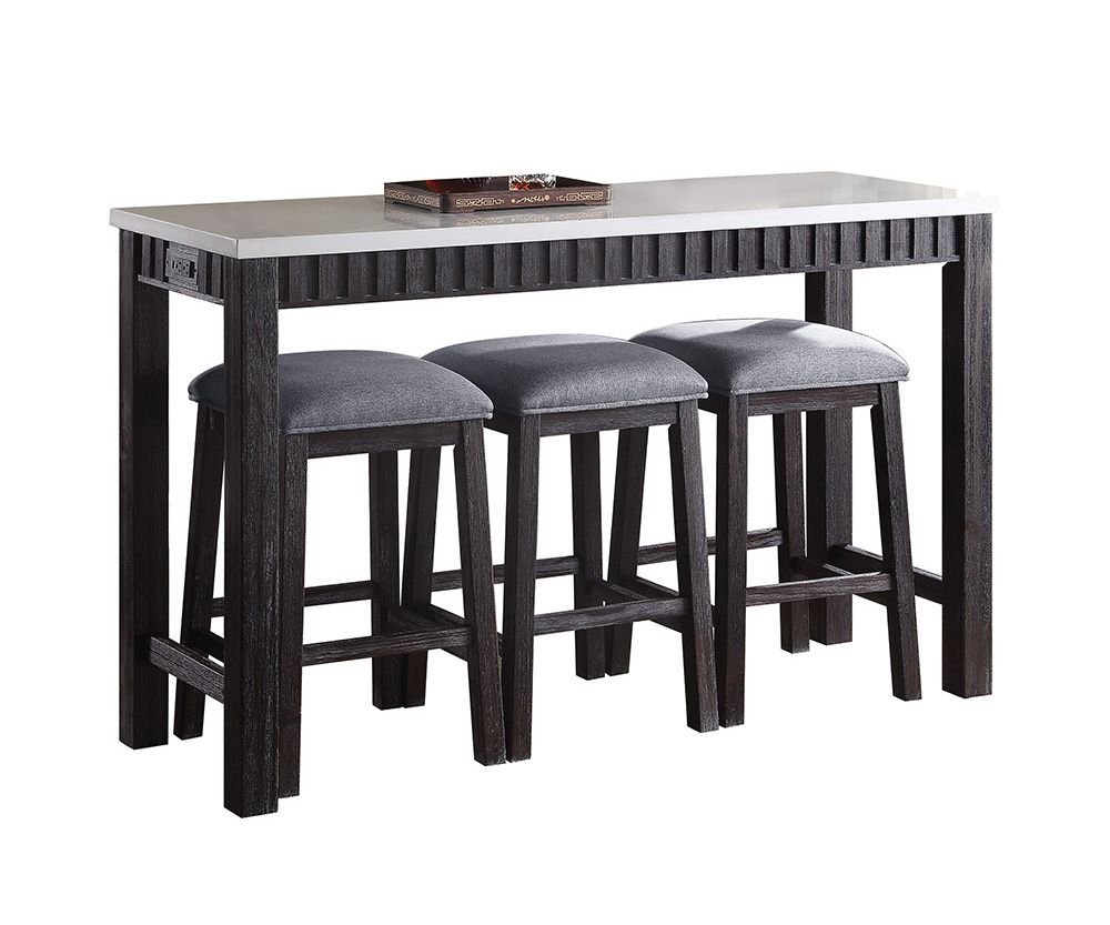 • Elegant Design: This 4-piece counter height table set combines modern functionality with timeless elegance, featuring a luxurious natural marble tabletop and weathered espresso wooden accents.