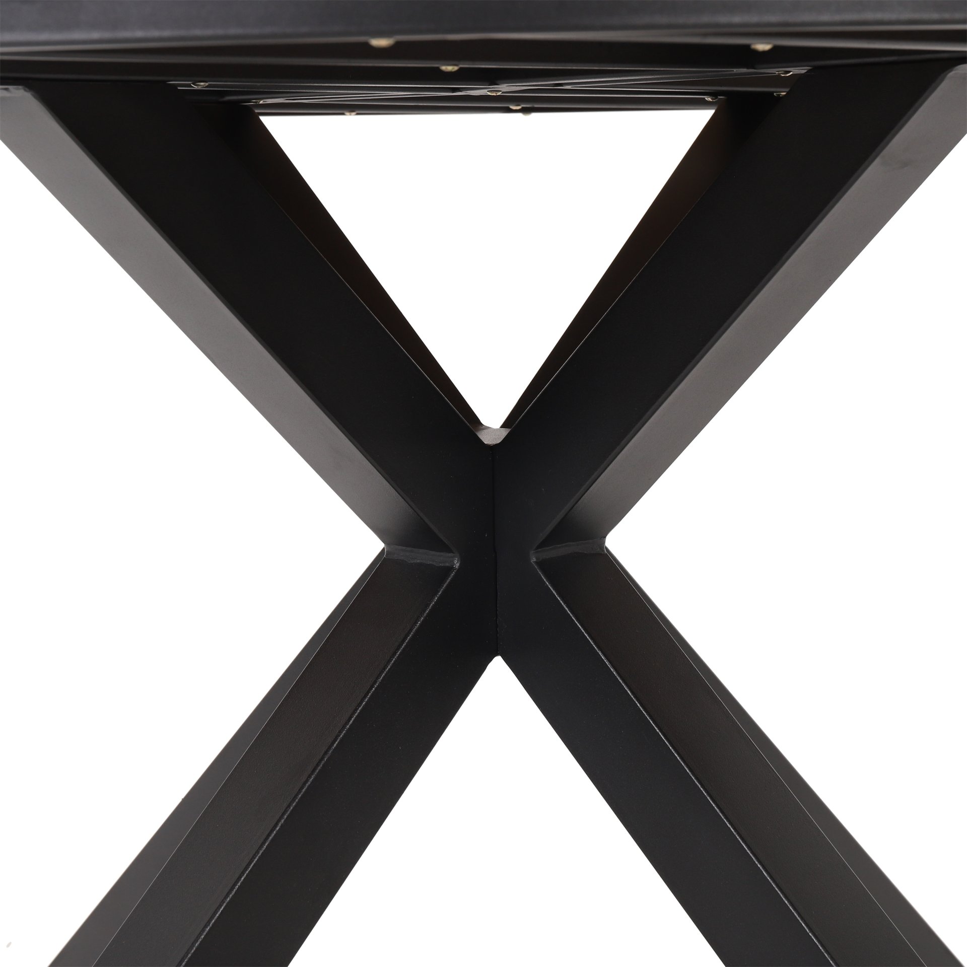 • MODERN INDUSTRIAL: Our circular dining table incorporates a stunning powder-coated frame with a rich acacia wood top to create an understated modern industrial design. Featuring a double X-shaped base contrasted by a classic slat design, this table offers