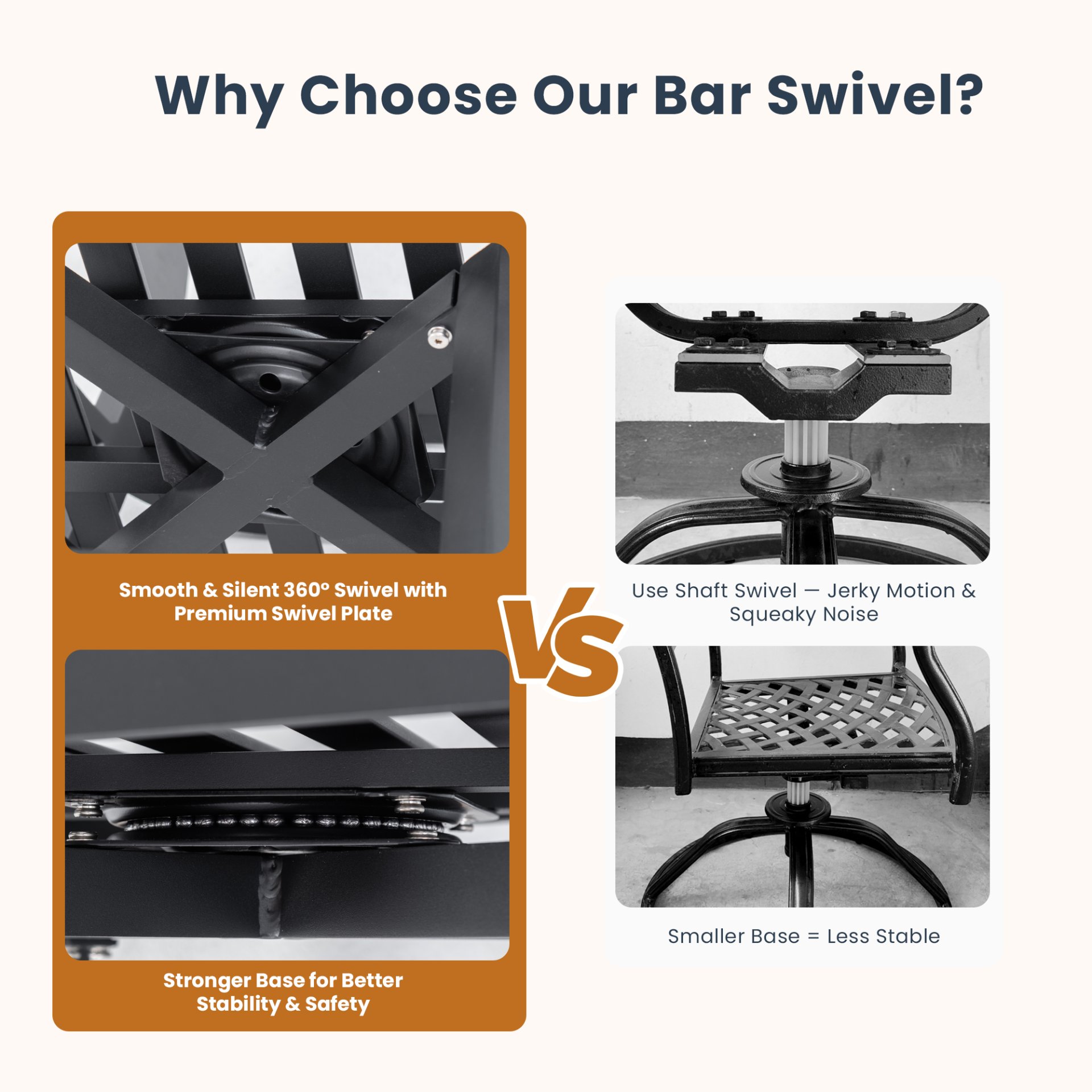 | Features | Swivel and Full Back |