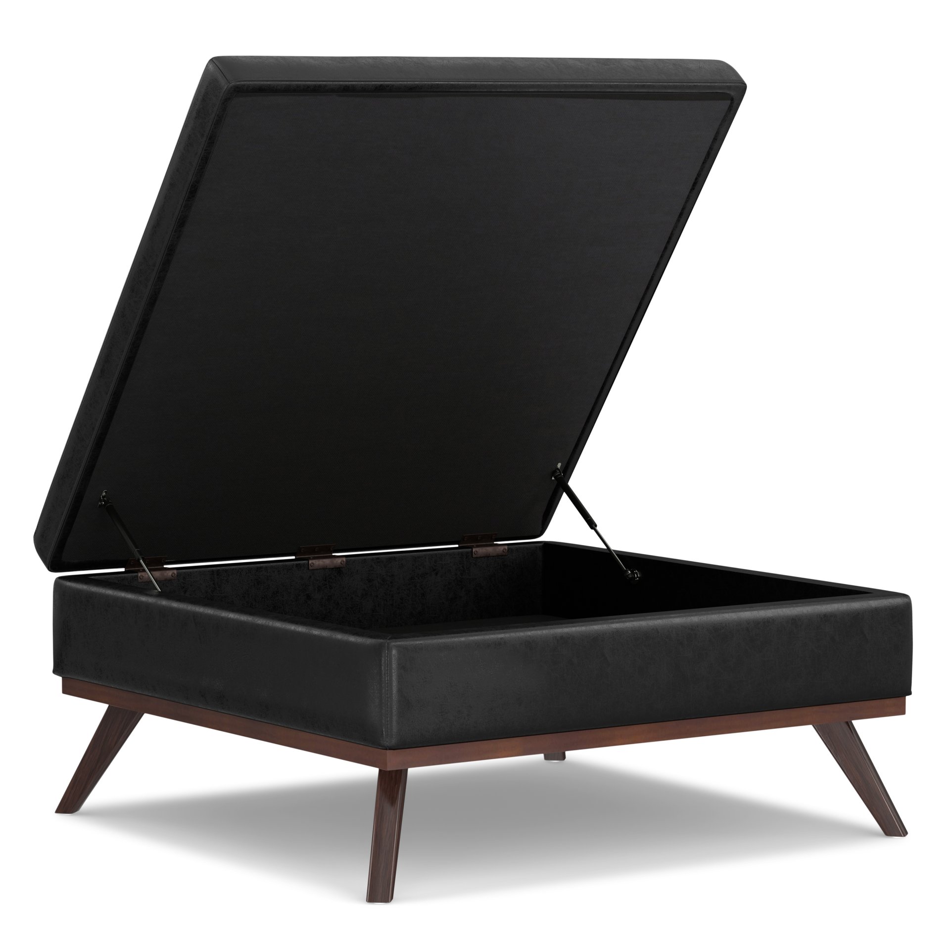 • Upholstered with a durable Distressed Black Vegan Faux Leather