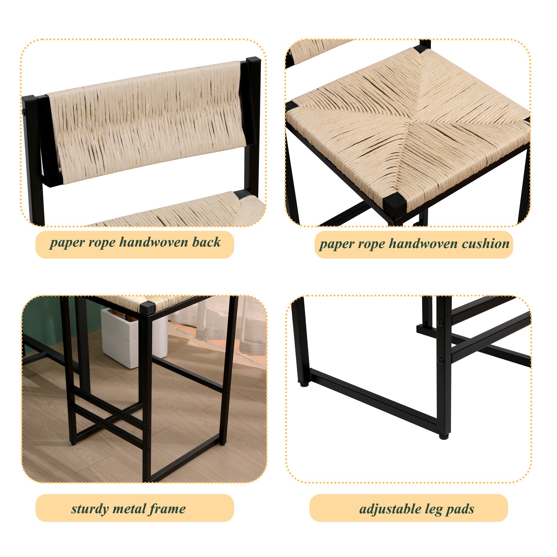 • Durable & Reliable: Our kitchen stool boasts a sturdy black metal frame and woven natural paper rope seat, both of which are built to last.