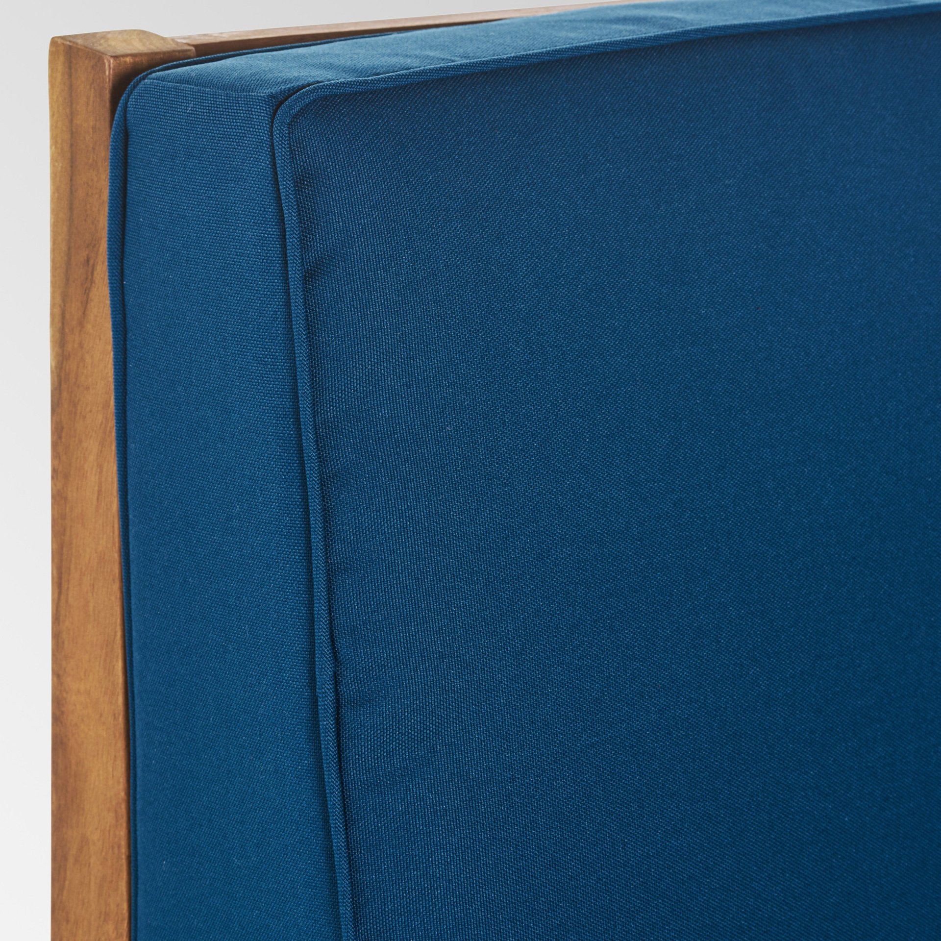 • Set Inclusions: The set includes one left arm seat, one right arm seat, one armless seat, and one table, all crafted from acacia wood with cushions made from 100% polyester.
