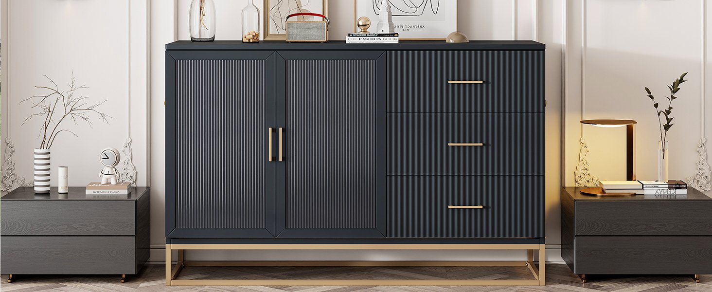 Premium Metallic Details: Equipped with gold metal handles and legs, adding a touch of elegance and durability, while enhancing the overall aesthetic with a metallic finish.