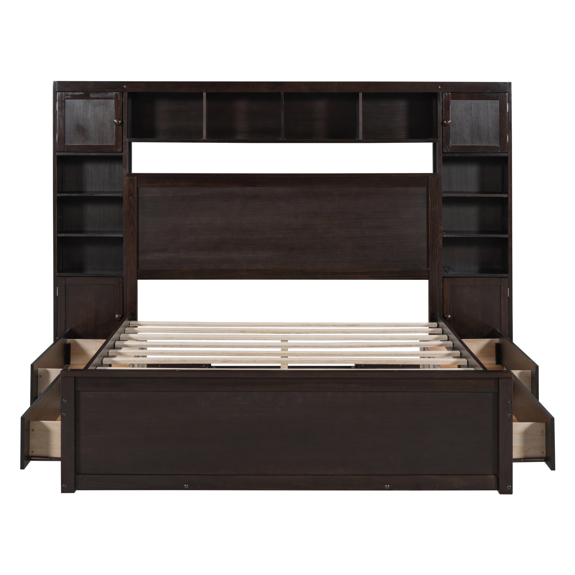 Flexible Storage Space: Four underbed drawers slide smoothly to maximize hidden storage potential. Perfect for organizing bedding or seasonal clothing while maintaining bedroom neatness. The headboard incorporates 10 open shelving cubes and 4 enclosed cabinets, offering versatile display and storage options for decorative items or personal essentials.