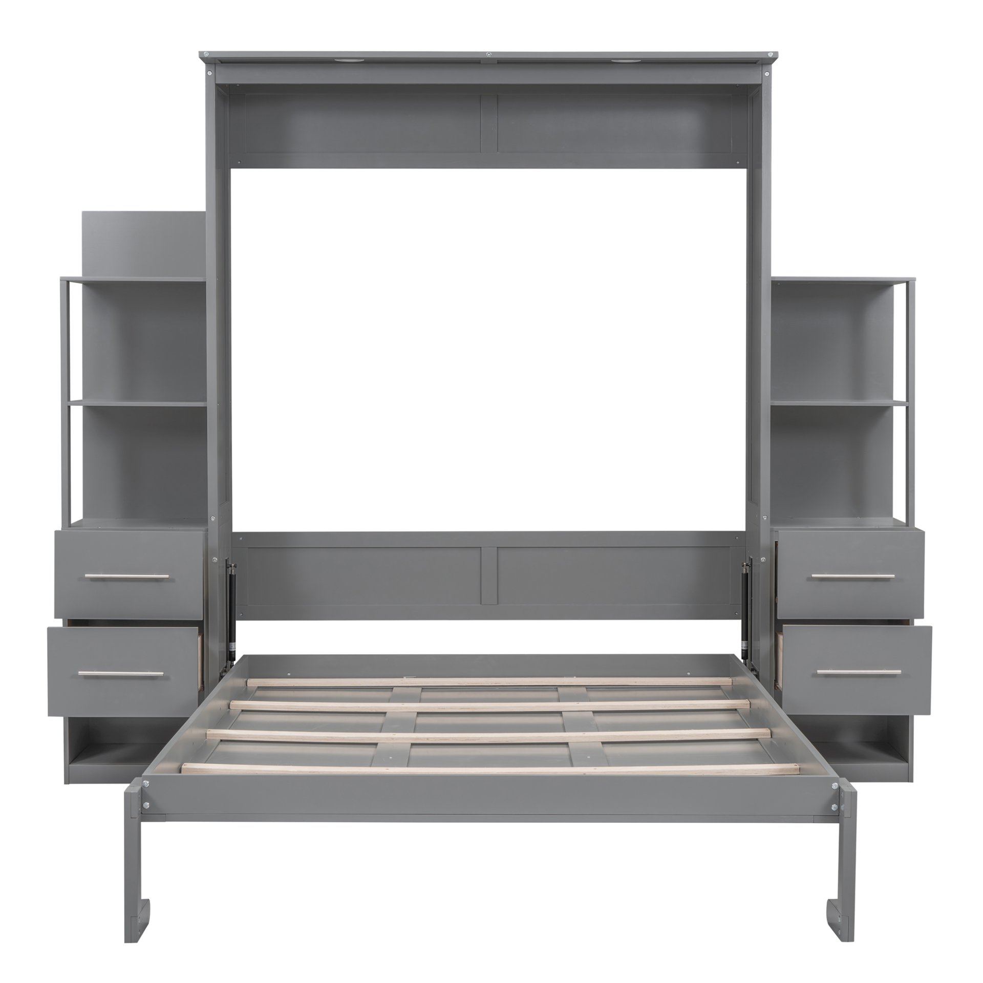 Multi-function: This versatile Murphy bed folds seamlessly into a cabinet, instantly freeing up floor space. Ideal for guest rooms, home offices, or gyms, it features 2 four-layer shelves and 4 spacious drawers for organized storage – combining smart functionality with stylish design.