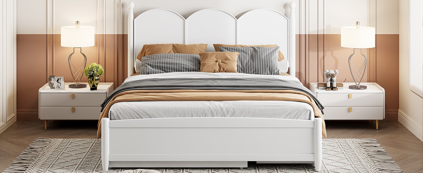 This classic design bed features a curved headboard, adding an elegant touch to any bedroom. Equipped with a convenient Twin XL pull-out bed and two large side drawers, it’s perfect for small families or guest rooms. Crafted from a sturdy combination of solid wood, MDF, and plywood, it ensures lasting durability and stability. Choose from three beautiful color options to complement your decor. Whether for daily use or hosting guests, this bed offers both style and functionality, making it an ideal choice for maximizing space without compromising on comfort or quality. Perfect for compact living spaces.