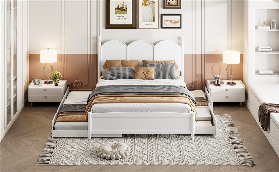 Maximize space utilization: This bed includes two spacious side drawers for storage and a convenient twin XL pull-out bed, ideal for guests. Perfect for small spaces, combining practicality with comfort and style.