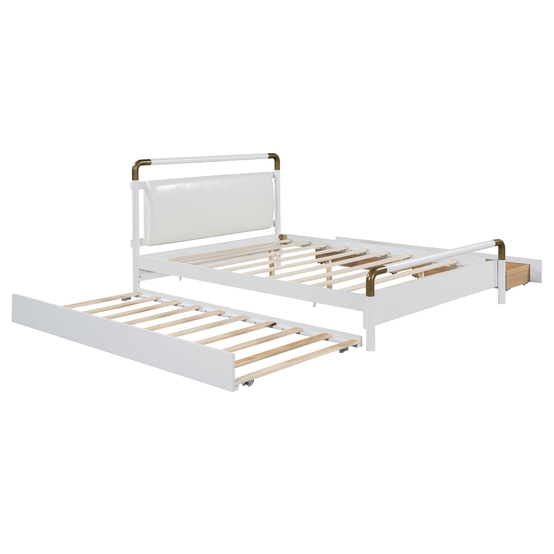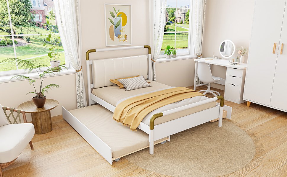 Modern Style & Elegant Design: Combining functionality with beauty, this bed features a soft PU leather backrest and metal accents on both the headboard and footboard, offering a sleek, elegant look that perfectly complements modern décor.