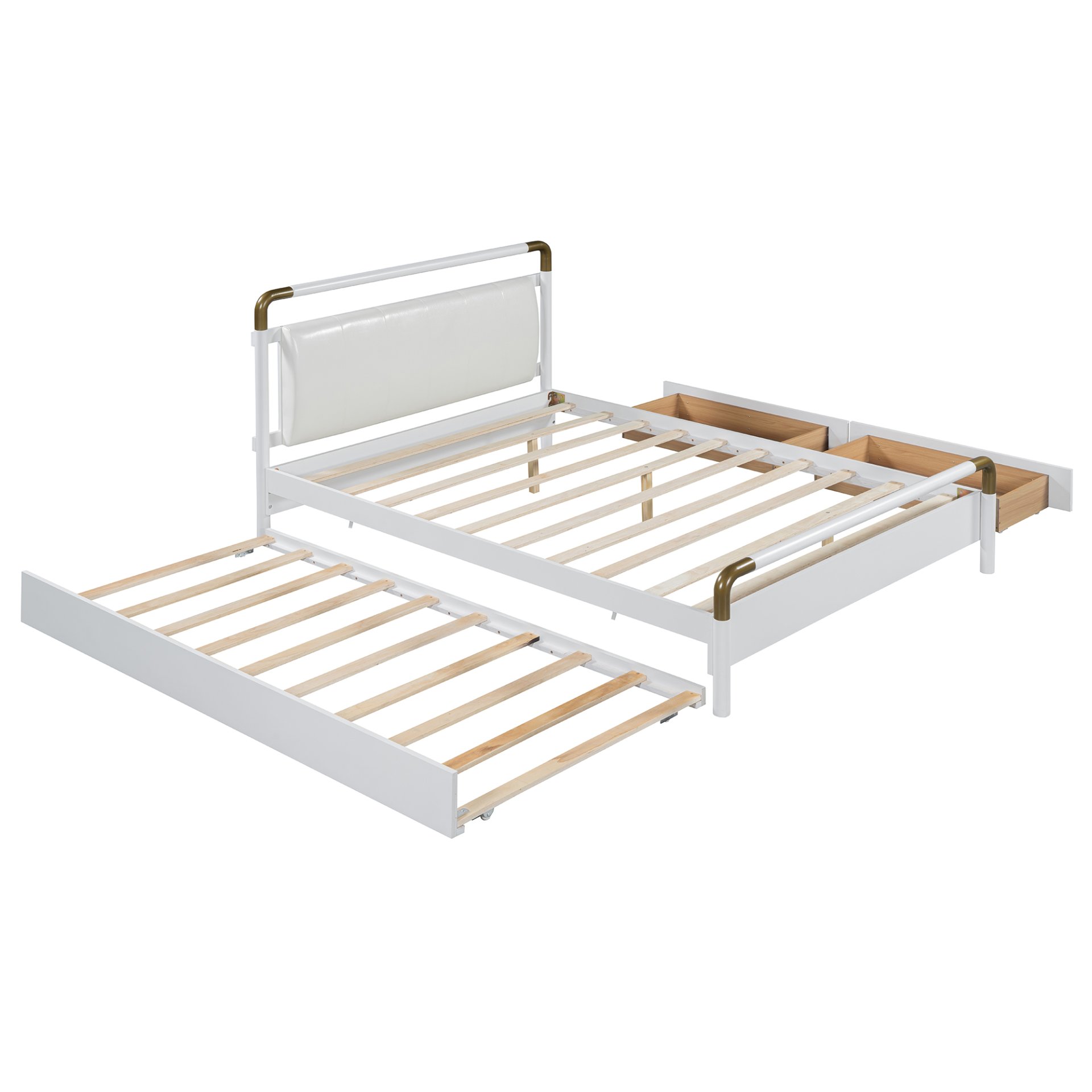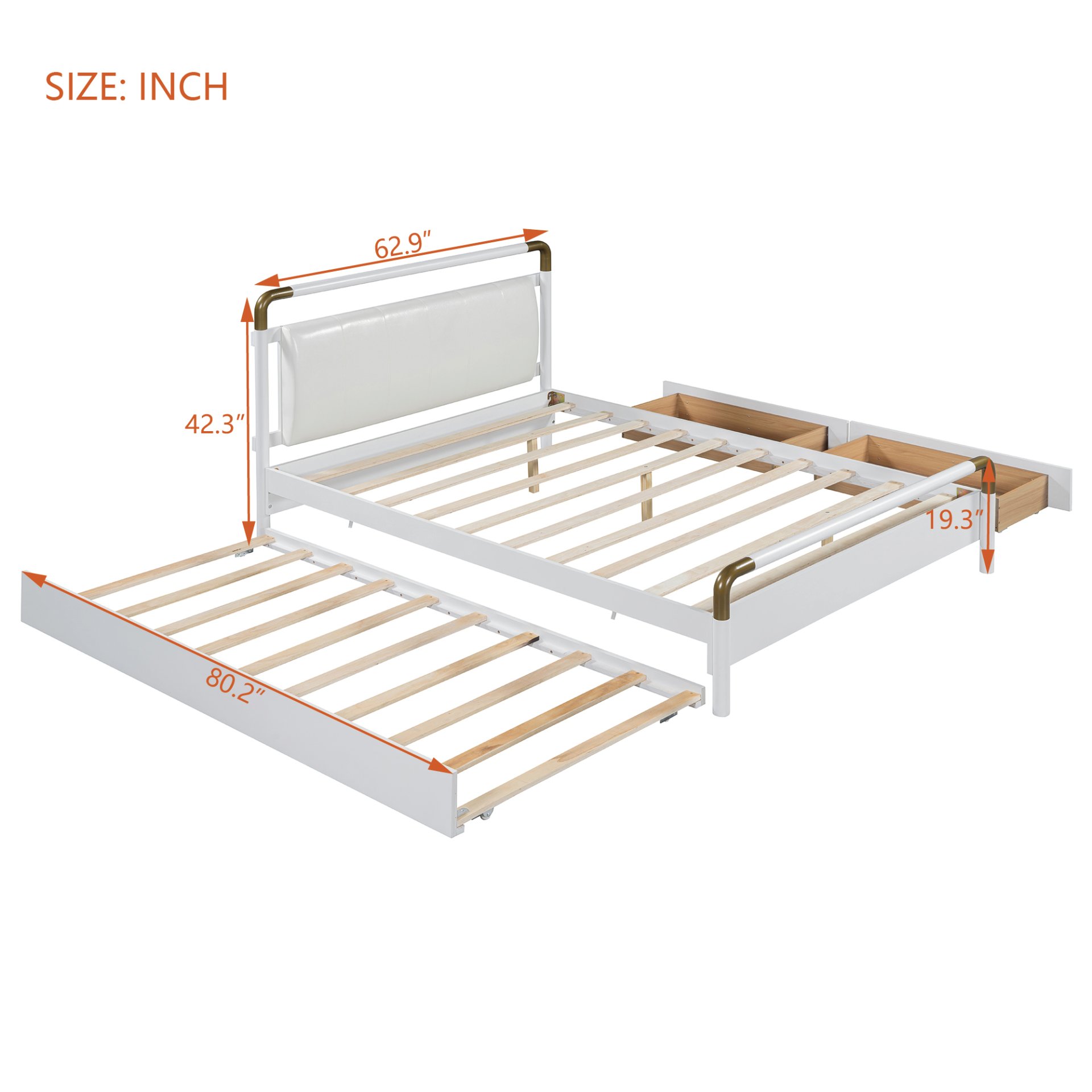 Upgrade your bedroom with our stylish Platform Bed, designed to bring both functionality and elegance to your space. This bed offers various style options, making it perfect for modern interiors. Featuring an additional trundle bed and two large drawers, it’s ideal for small spaces. The soft padded backrest adds comfort and sophistication, creating a cozy yet elegant atmosphere. Revitalize your bedroom with our Platform Bed and experience the perfect blend of style and functionality. Transform your space today and discover the joy of a clutter-free, beautifully designed room.