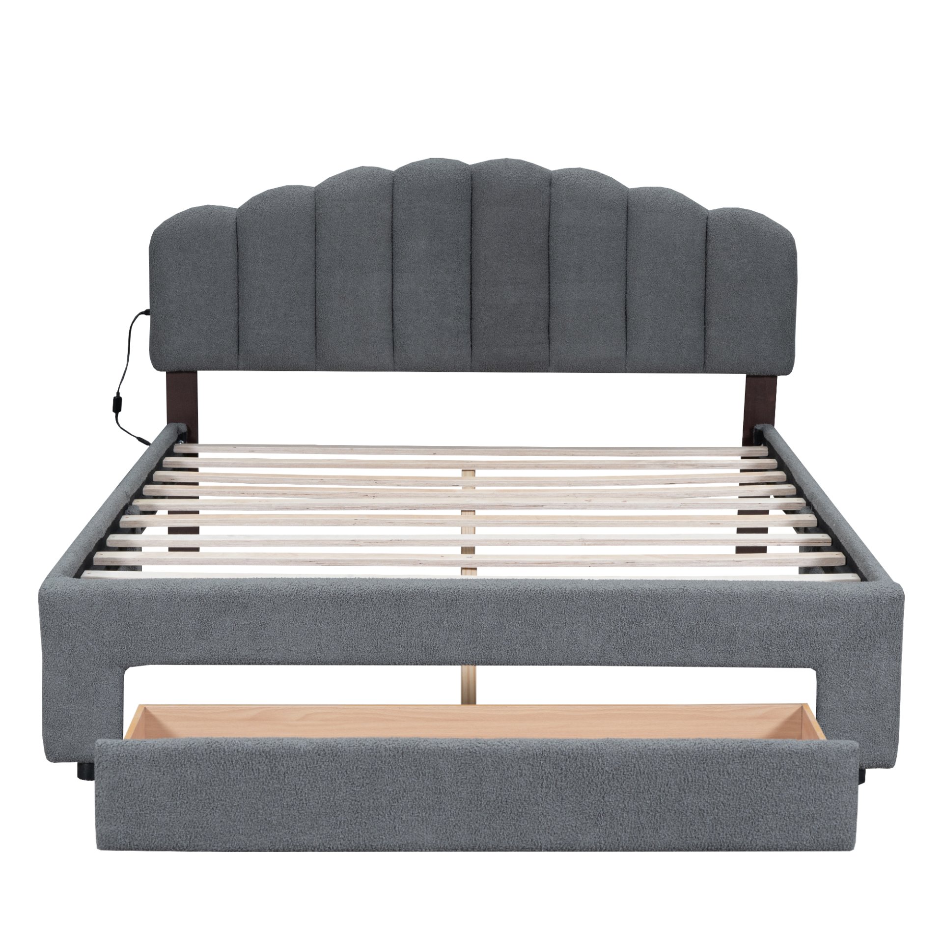 A Storage Drawer: This upholstered bed includes one large drawer under the bed for storage, perfect for organizing clothes, bed linens, toys, and games. A versatile piece that brings functionality, versatility, and style to your home, while saving space.