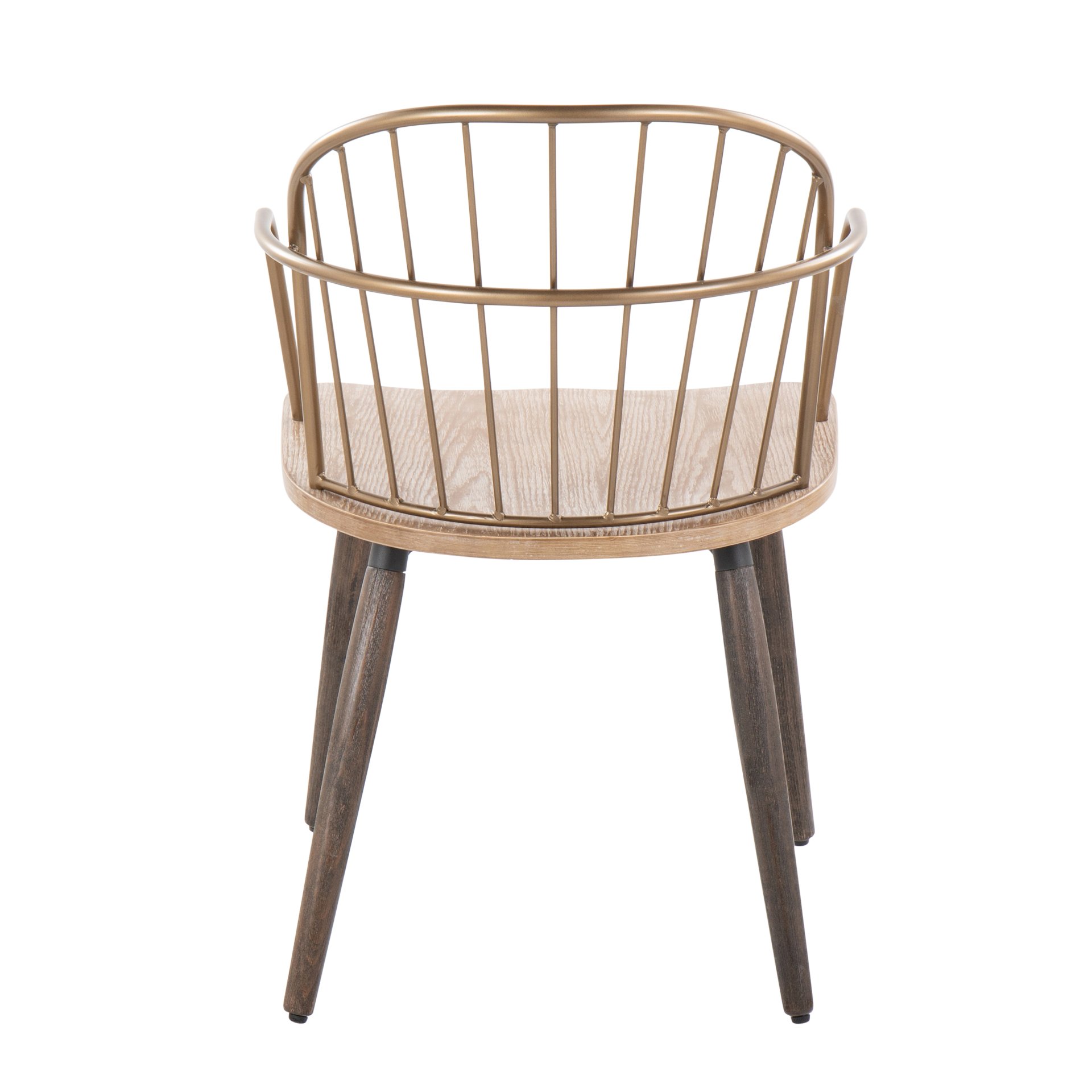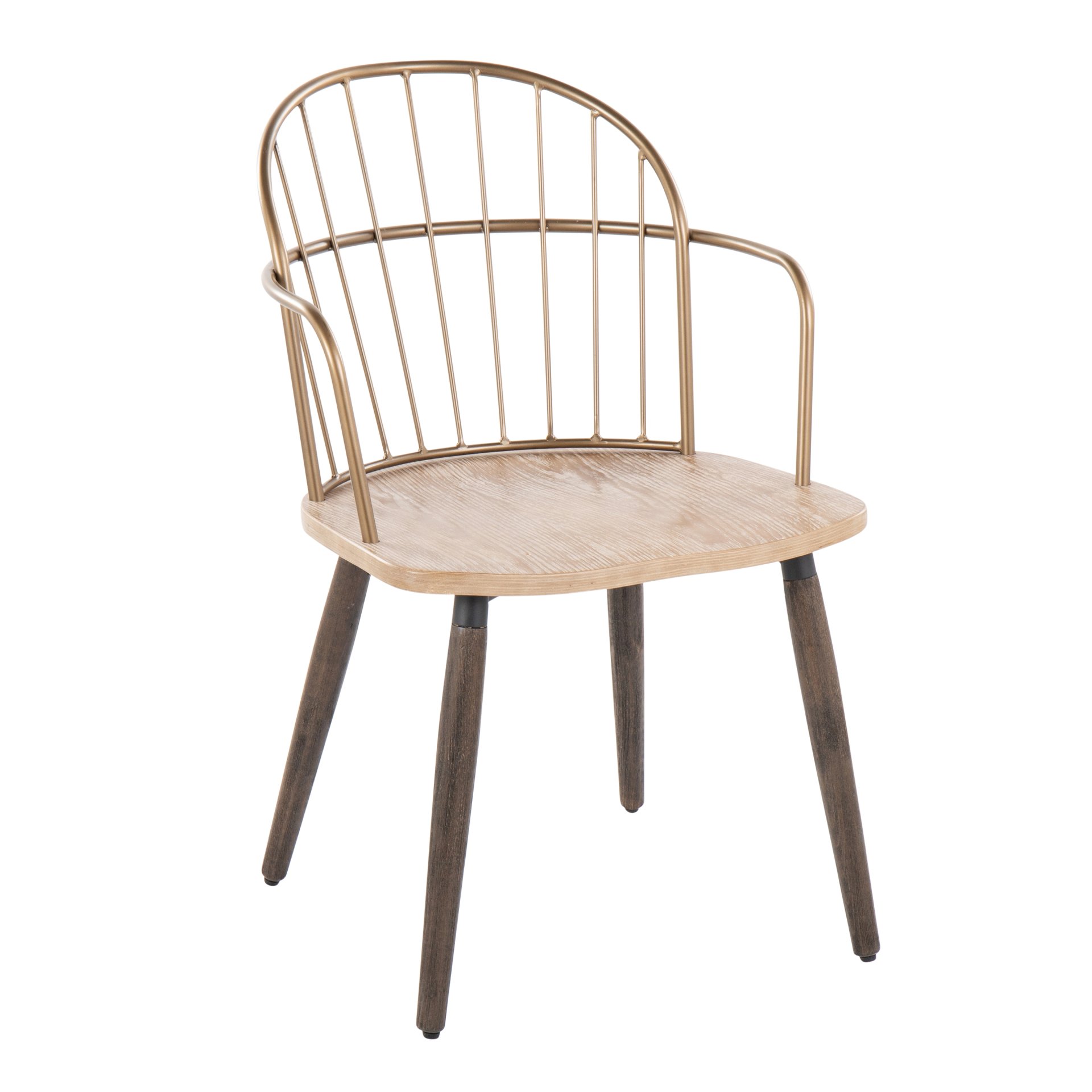 • Industrial Style: The Riley Arm Chair by LumiSource combines industrial style with farmhouse aesthetics, featuring a unique blend of white washed seat, brown legs, and antique copper back and armrests. Its design is an updated take on the traditional spindle-back chair, offering a stylish addition to any dining room.