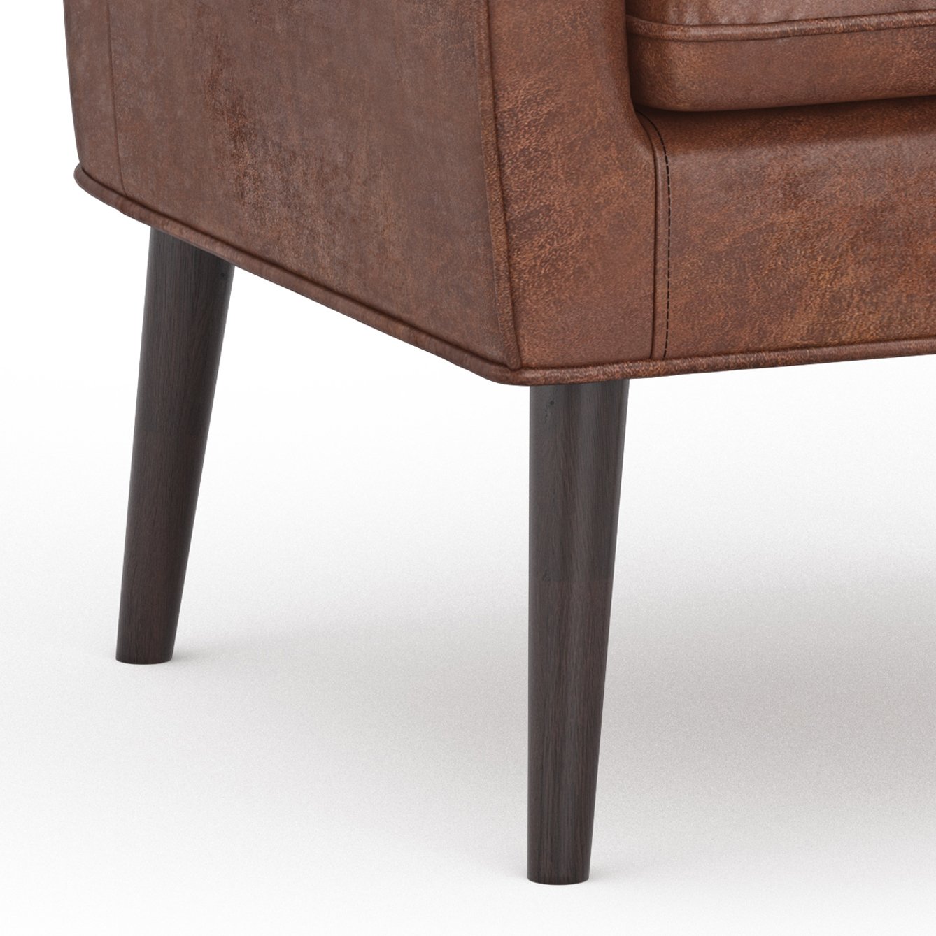 • Upholstered with a durable Distressed Saddle Brown Vegan Faux Leather