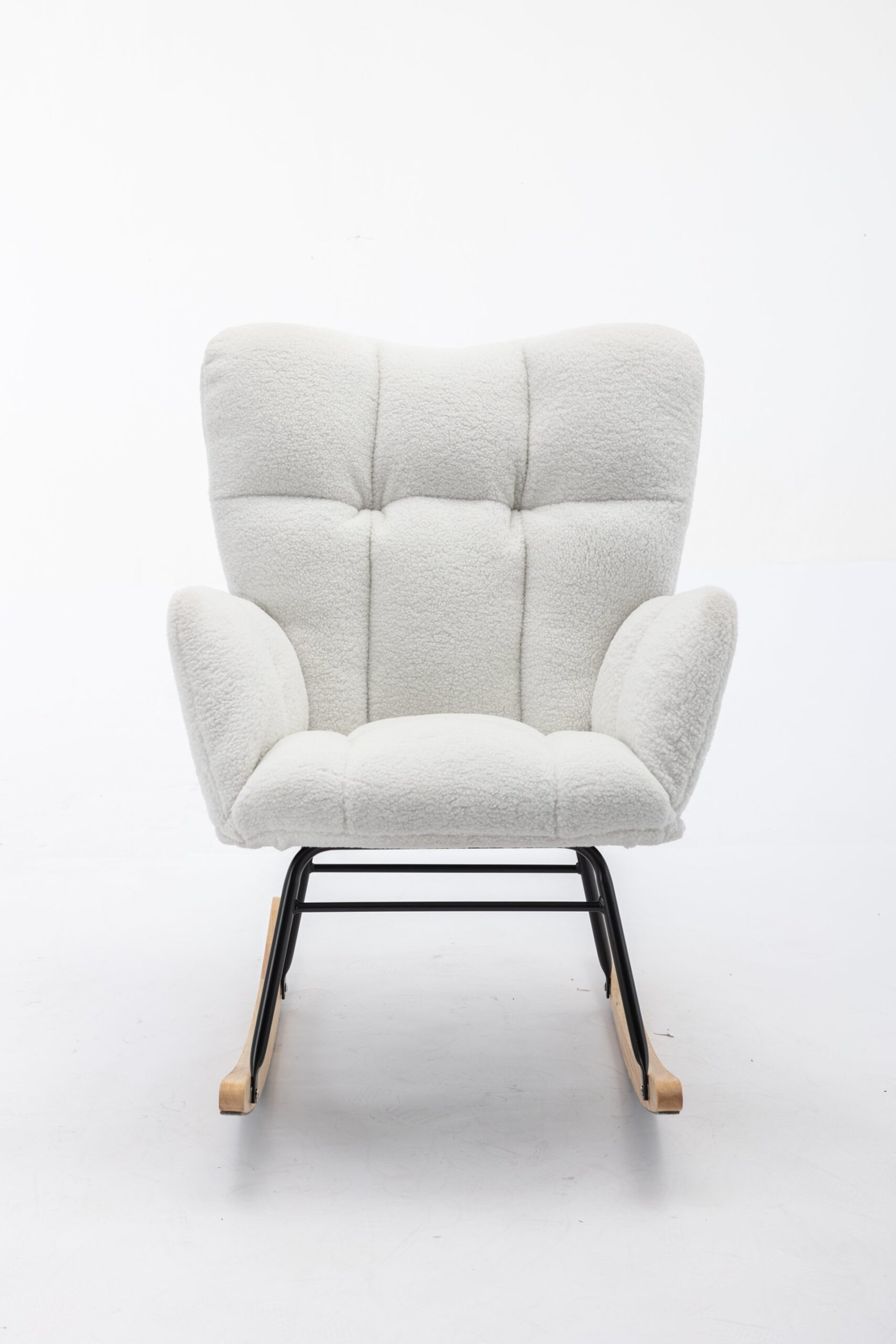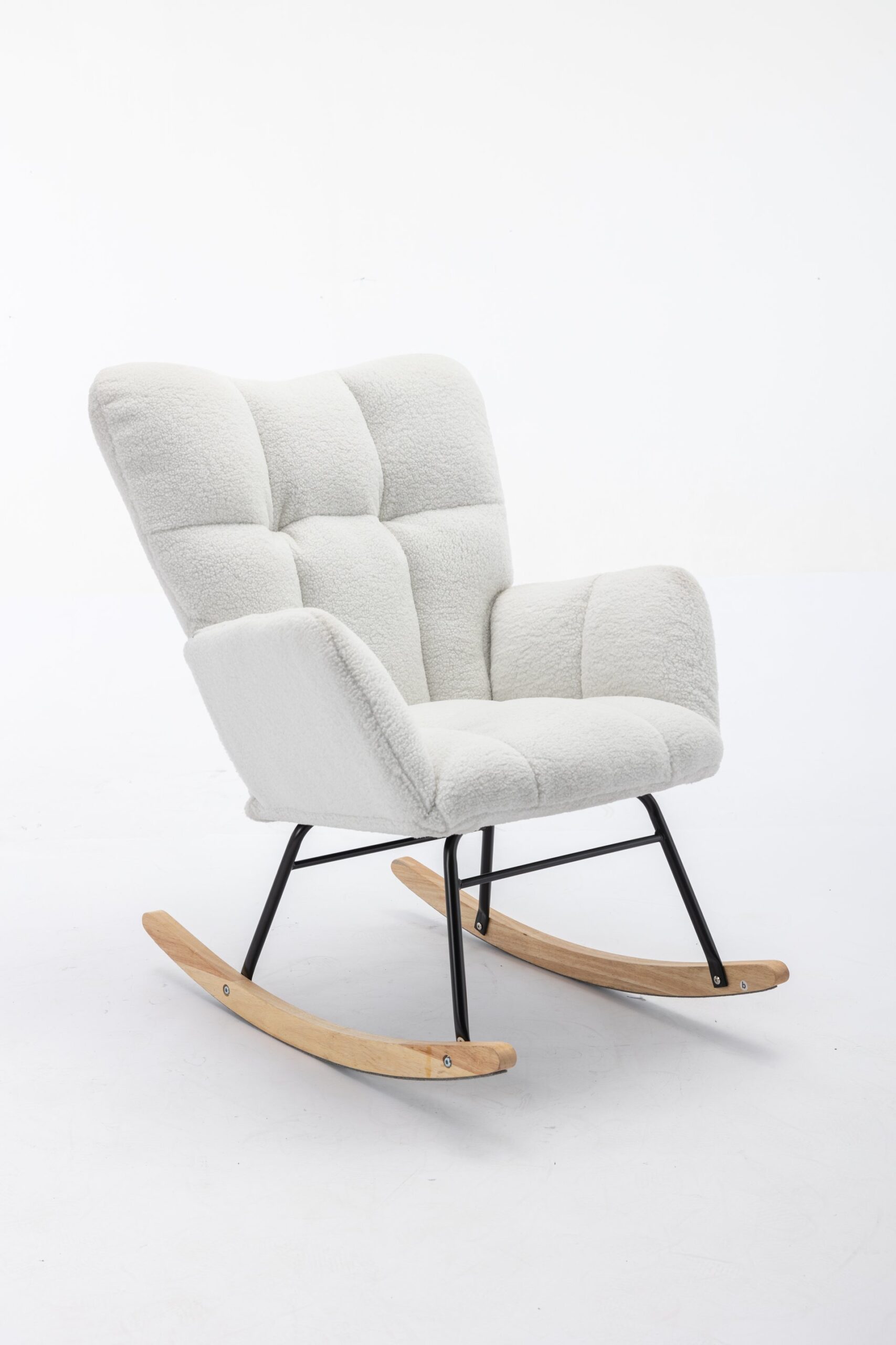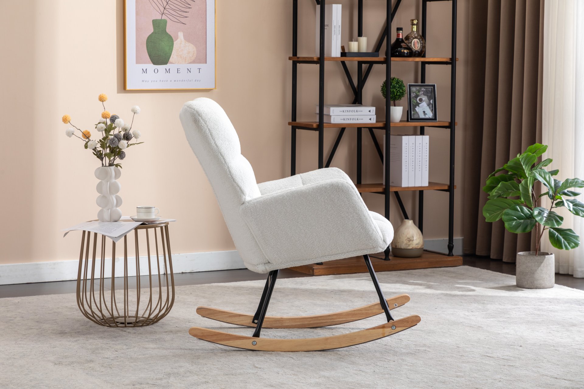 • Elegant Design: This rocking chair features a mid-century modern design with a tufted upholstered finish, adding a touch of sophistication to any living room or bedroom