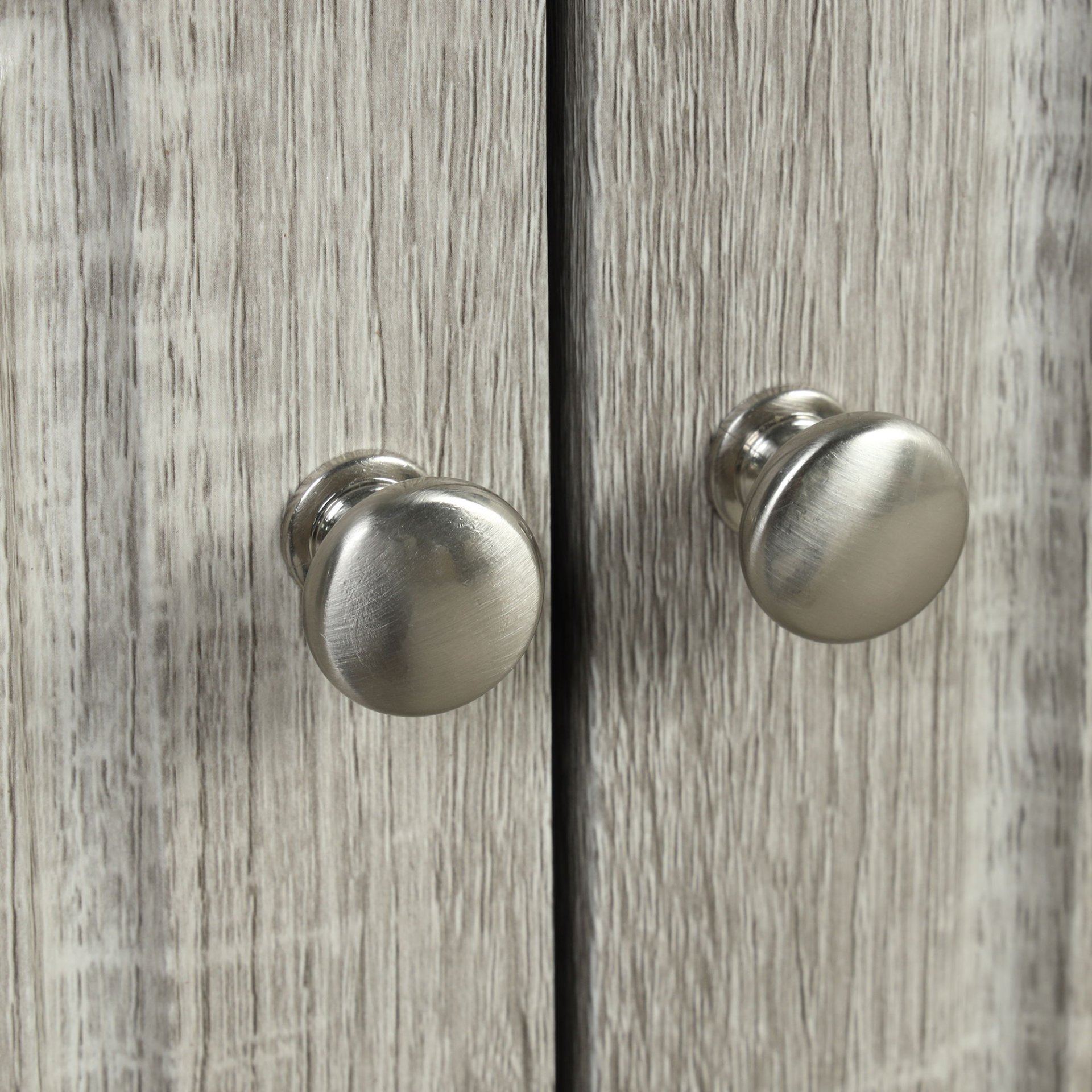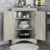Affordable Cabinet: This corner storage cabinet features adjustable shelves and brushed nickel knobs, providing both visual appeal and functionality.