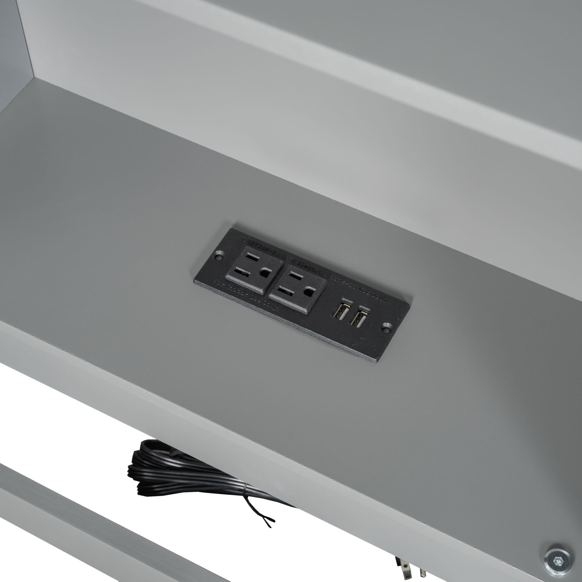 • Charging Station: Features two USB ports and two standard outlets on the bed arm for device charging