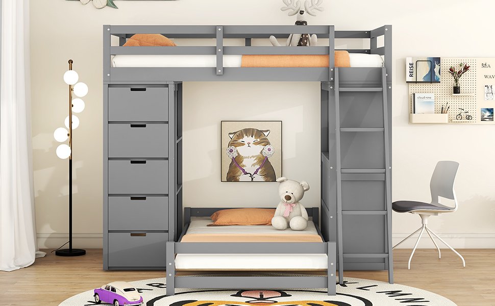 Maximum Storage Space: Equipped with multiple drawers, shelves, and a built-in desk, this bed is perfect for homes with limited space, helping to keep your room neat and organized.
