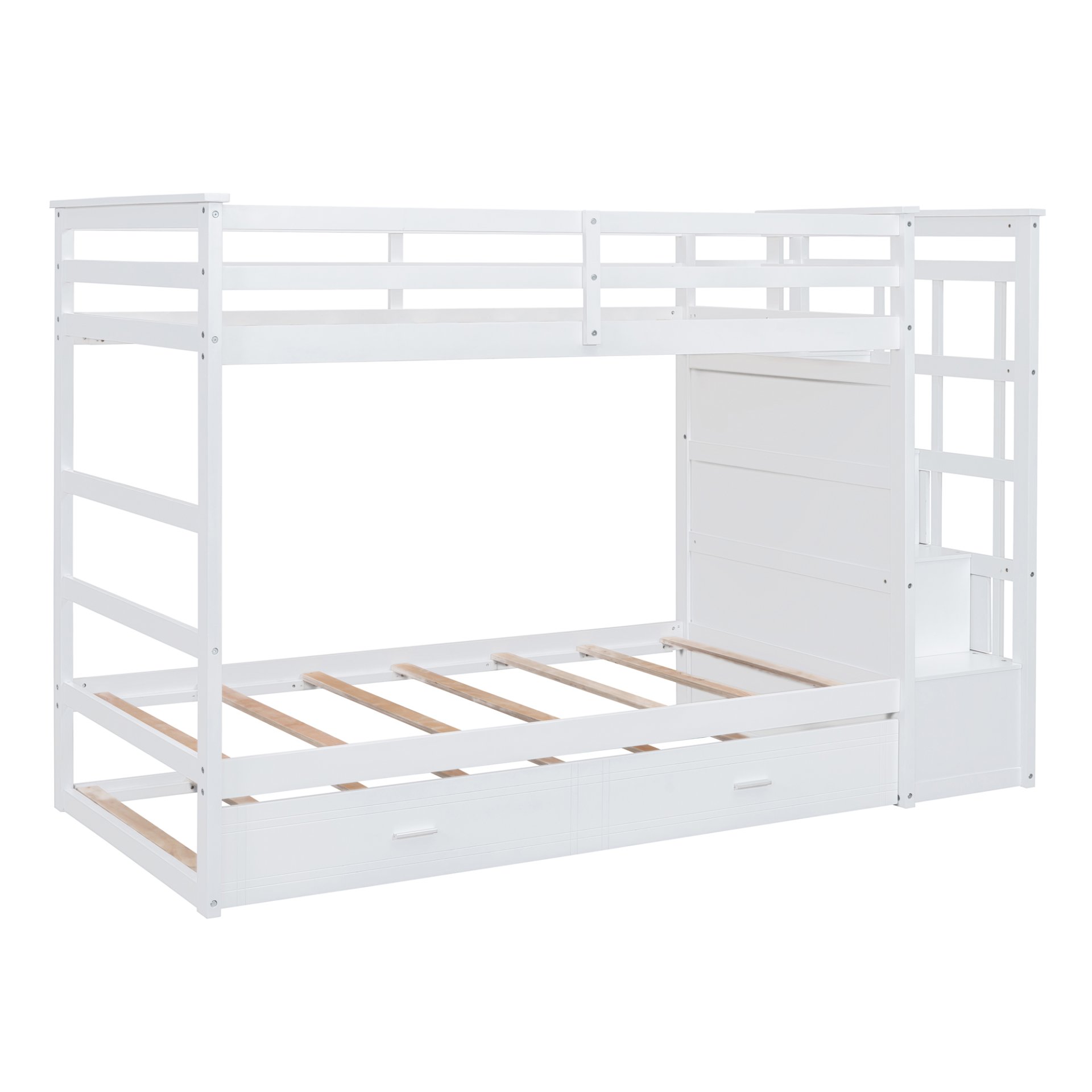 Storage Convenience: Featuring a multifunctional staircase instead of a ladder, providing easy and safe access to the upper bed. It includes four storage drawers, meeting families' organizational demands.