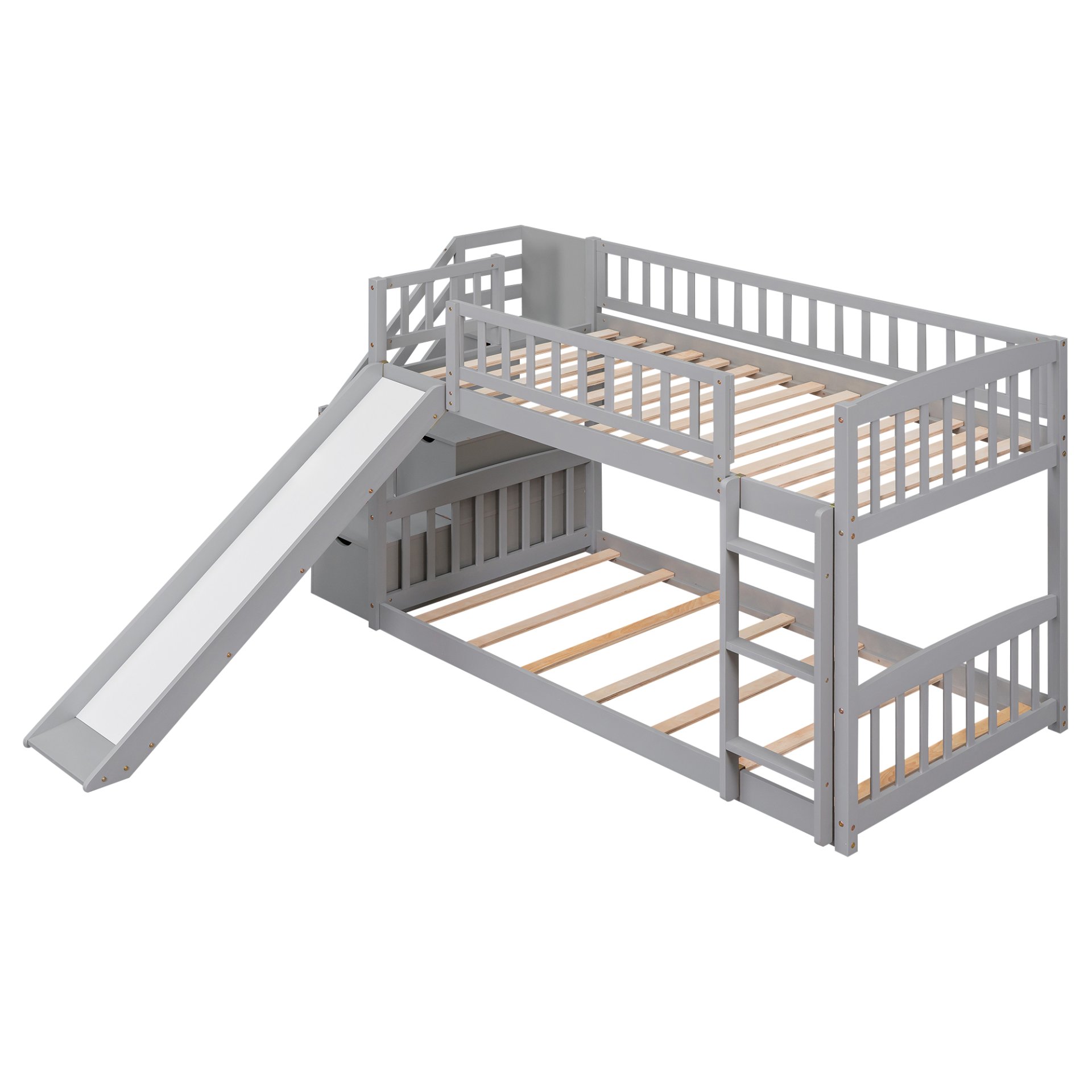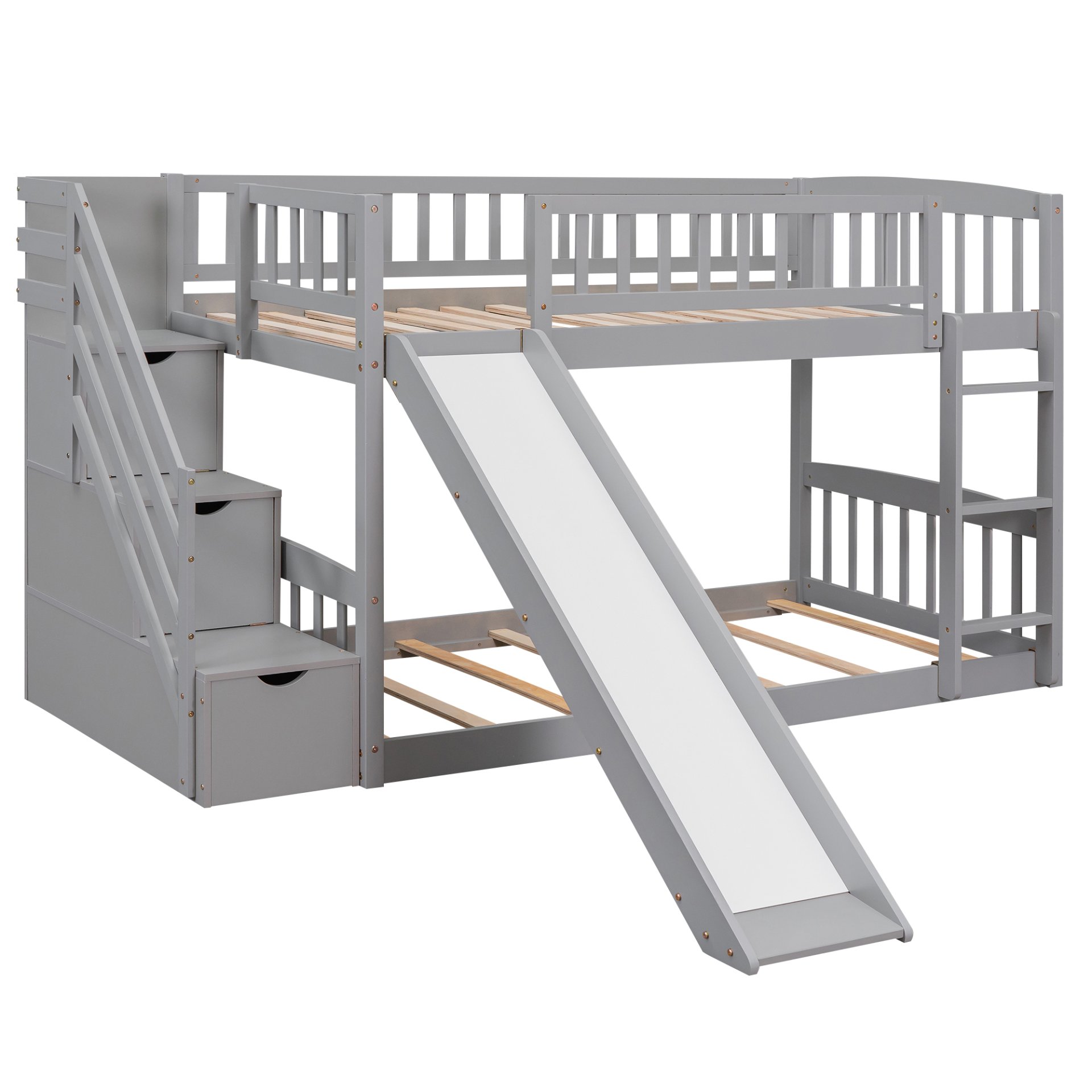 Convertible Ladder and Slide: With a built-in ladder and staircase, it is easy to climb up and down from the top bed. Featuring a low slide for added fun, this bunk bed helps develop your sense of balance and coordination. Both the slide and ladder are convertible, so they can be placed on either the left or right side. Additionally, the staircase with drawers can also be positioned on either side.