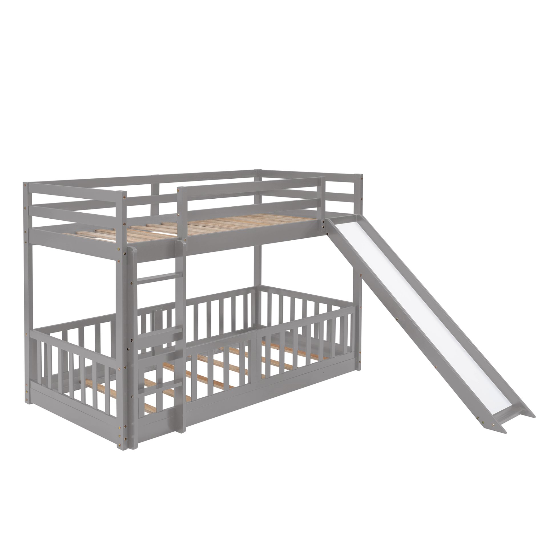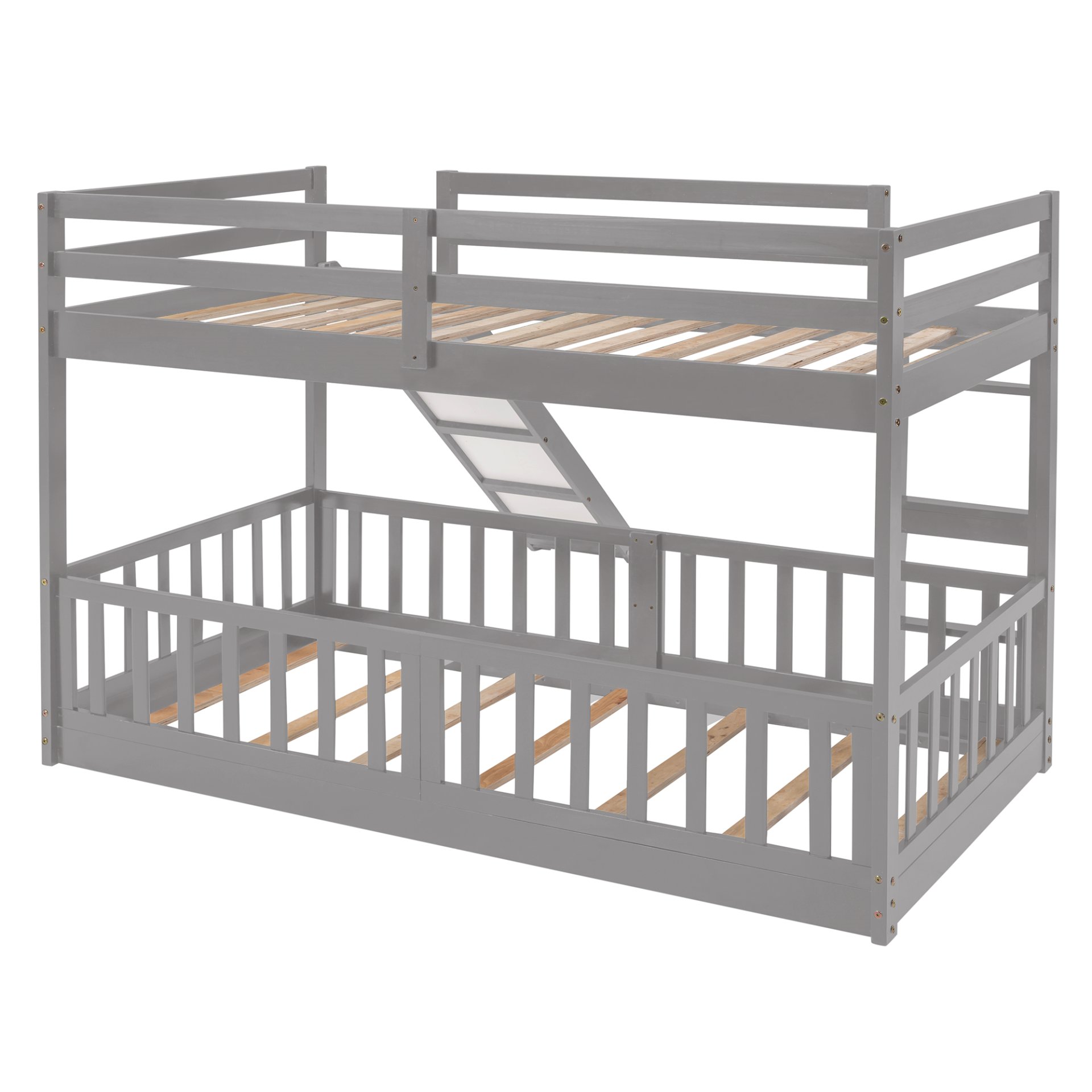 Convertible Ladder and Slide: With a built-in ladder, it is easy to climb up and down from the top bed. Featuring a low slide for added fun, this bunk bed helps develop balance and coordination. The slide and ladder are convertible, allowing placement on either the left or right side. Additionally, the bottom guardrails and bottom bed can be removed for three different assembly methods.