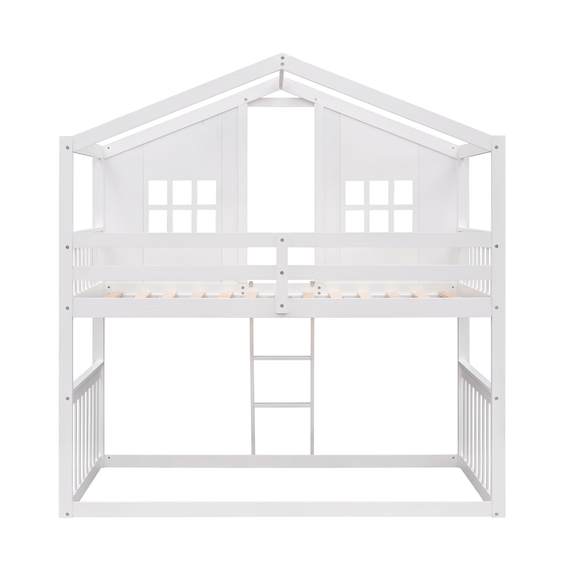 Choose the best with this bunk bed crafted from high-quality solid pine wood for lasting use, no box spring needed. Its classic house-shaped framework and sky roof create an imaginative playhouse environment. The fence-shaped appearance adds a touch of rural style, making it the bedroom's focus and offering both fun and elegance. Easy assembly with shipped parts and instructions, this bed is a chic barnyard-style addition, ensuring durability and a timeless design for your bedroom.
