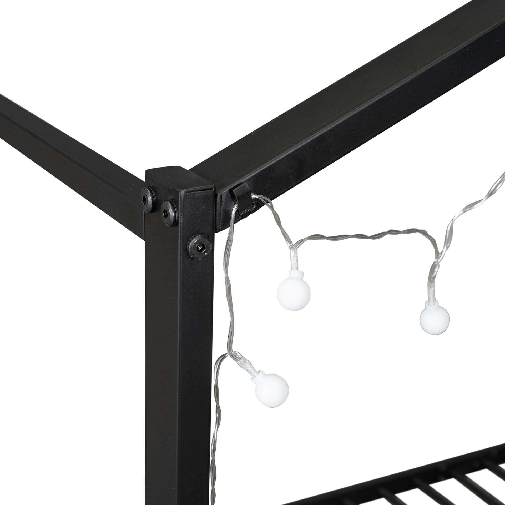 Playhouse Design: This twin-size metal bed features a unique playhouse design with a roof, transforming the bed into an inviting and fun space. It doubles as a play area, making it ideal for children who love imaginative play.