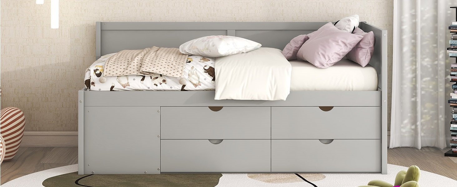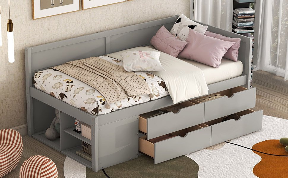 Maximized space: The daybed with handy pull-out drawers and three functioning shelves takes up minimal space, perfect for organizing anything from clothes and bed linens to toys and games. Such a versatile piece, bringing functionality, versatility, and style to your home, perfect for those who have limited space.