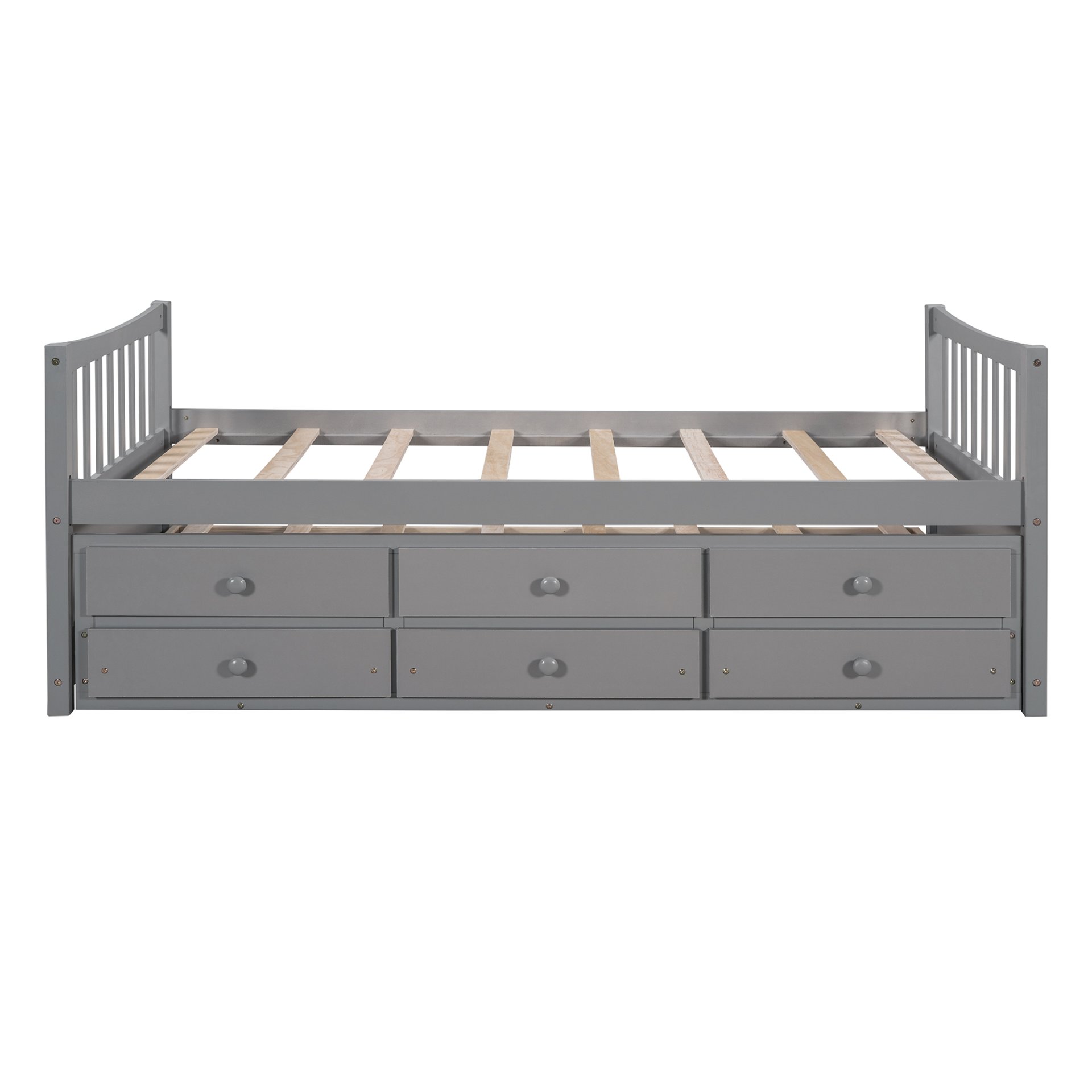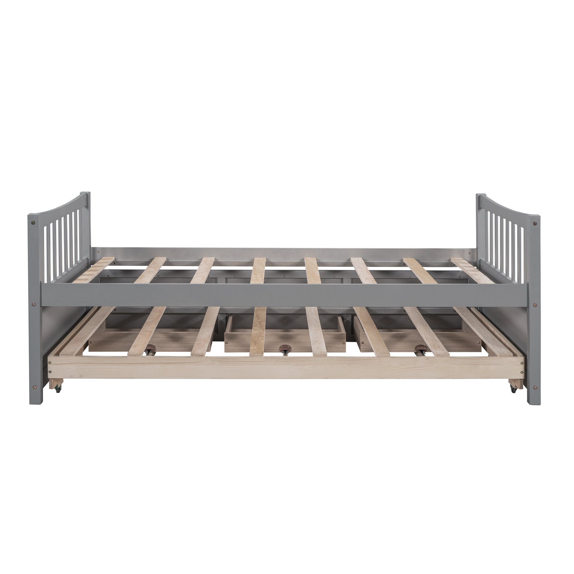 Maximized space :The daybed with handy pull-out trundle and three functioning drawers takes up minimal space for the spontaneous sleepover guest. The trundle and drawers can easily be pulled in and out for maximum storage space, perfect for organizing anything from clothes and bed linens to toys and games. Such a versatile piece, bringing functionality, versatility, and style to your home, perfect for those who have lots of visitors.