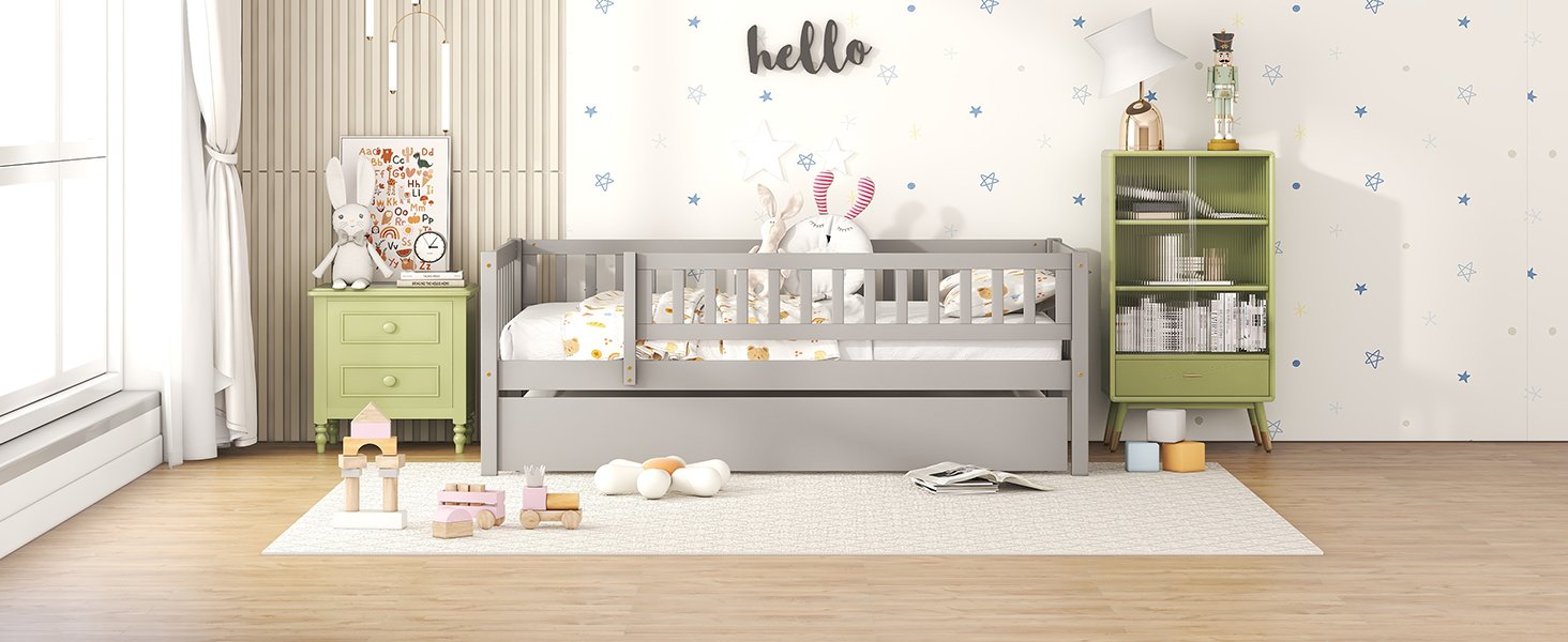 Fence Guardrails Design: The surrounding fence provides enhanced safety by preventing accidental falls from the bed platform. Additionally, the open entry in the middle allows for easy access, making getting in and out of bed effortless while adding a touch of fun to the experience.