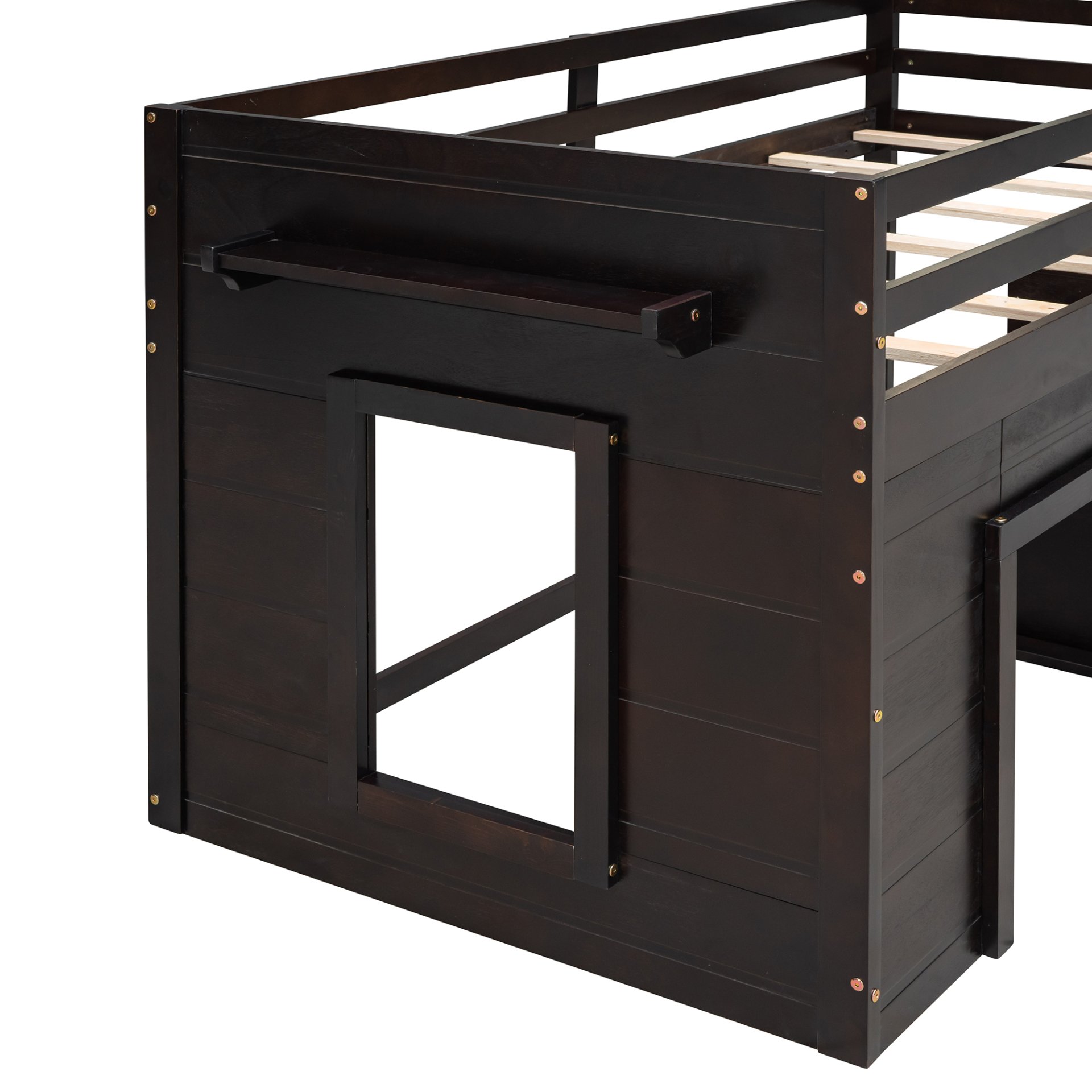 Crafted with high grade manufactured pinewood, enjoy the Loft bed in the shades espresso, gray and white to match the color scheme of any room. Designed with a loft structure, enjoy the space underneath used to house storage drawers. Three wide drawers provide plenty of storage options for you to help keep their space tidy and organized. The built-in two rung ladder provides easy access to the twin sized bed featuring full length safety guardrails.