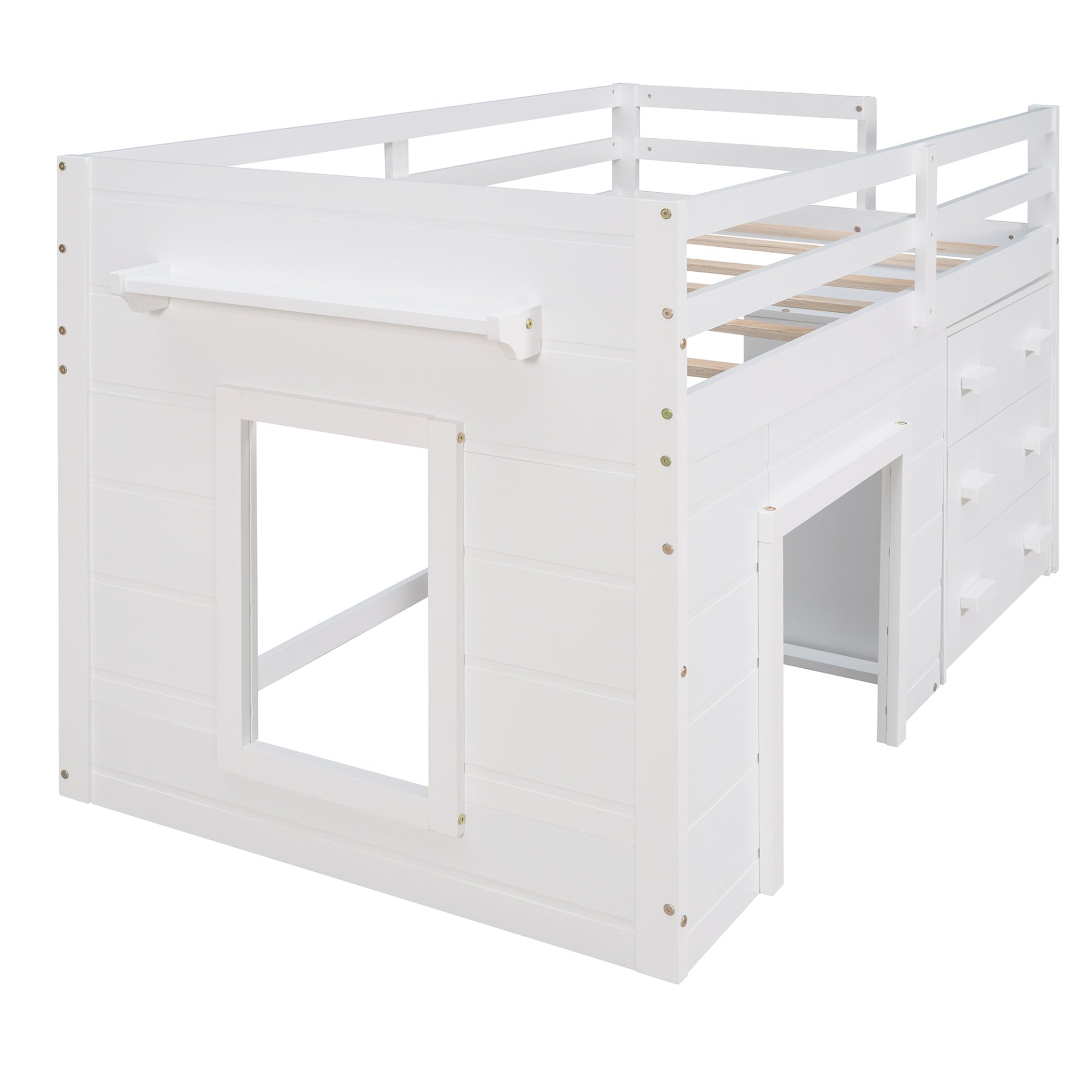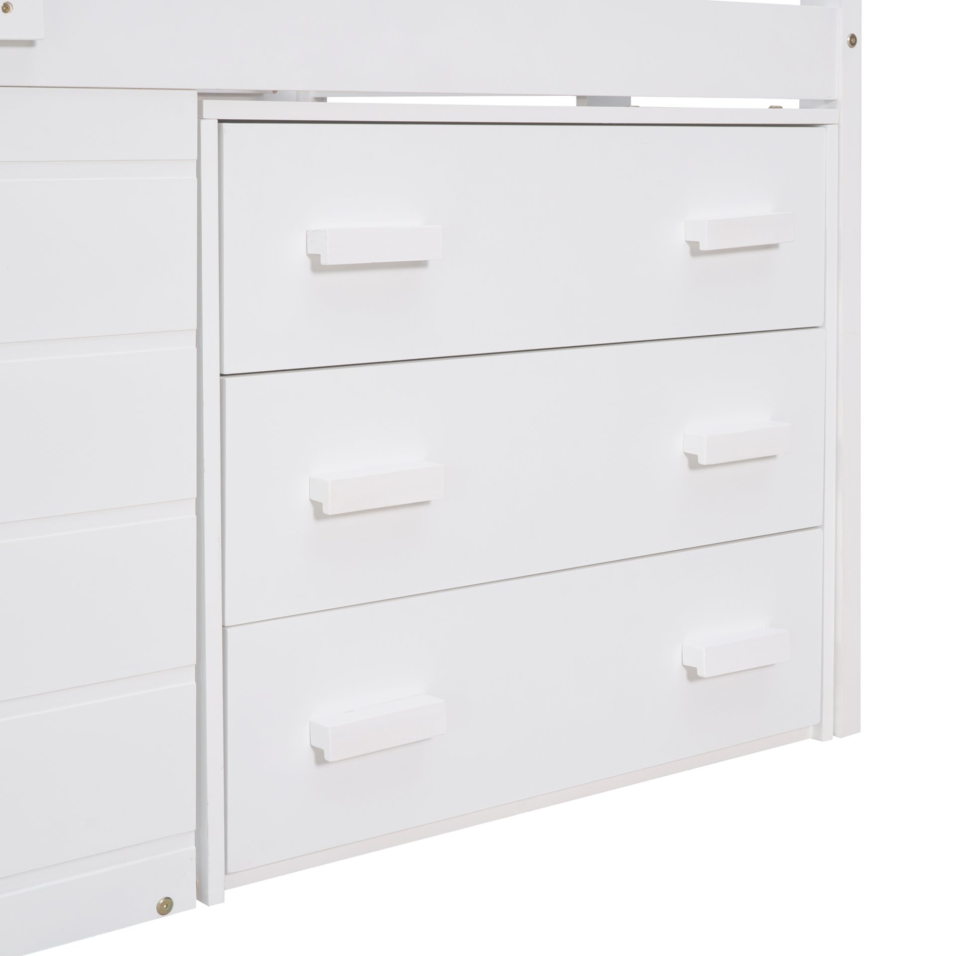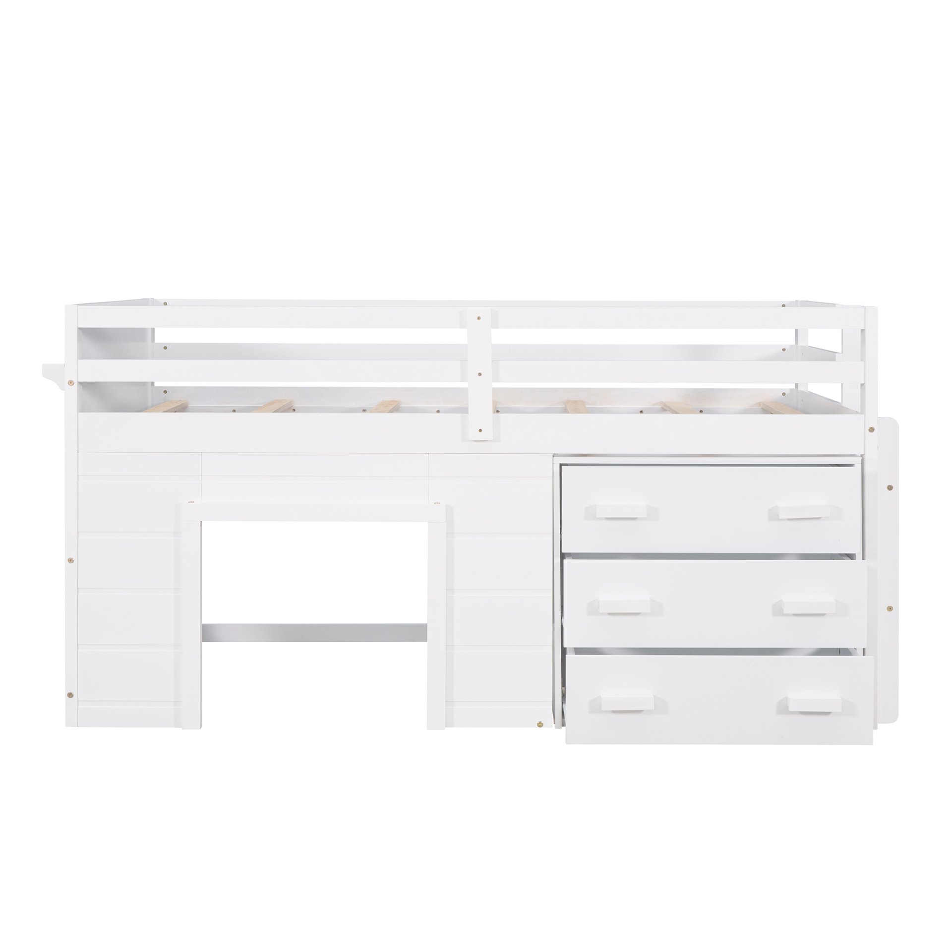 Designed for your safety: The loft bed features a full-length guardrail. Along with the handrail, this loft bed ensures top-notch security for your family. Whats more, the solid legs that made of solid pine wood can add strength and durability.