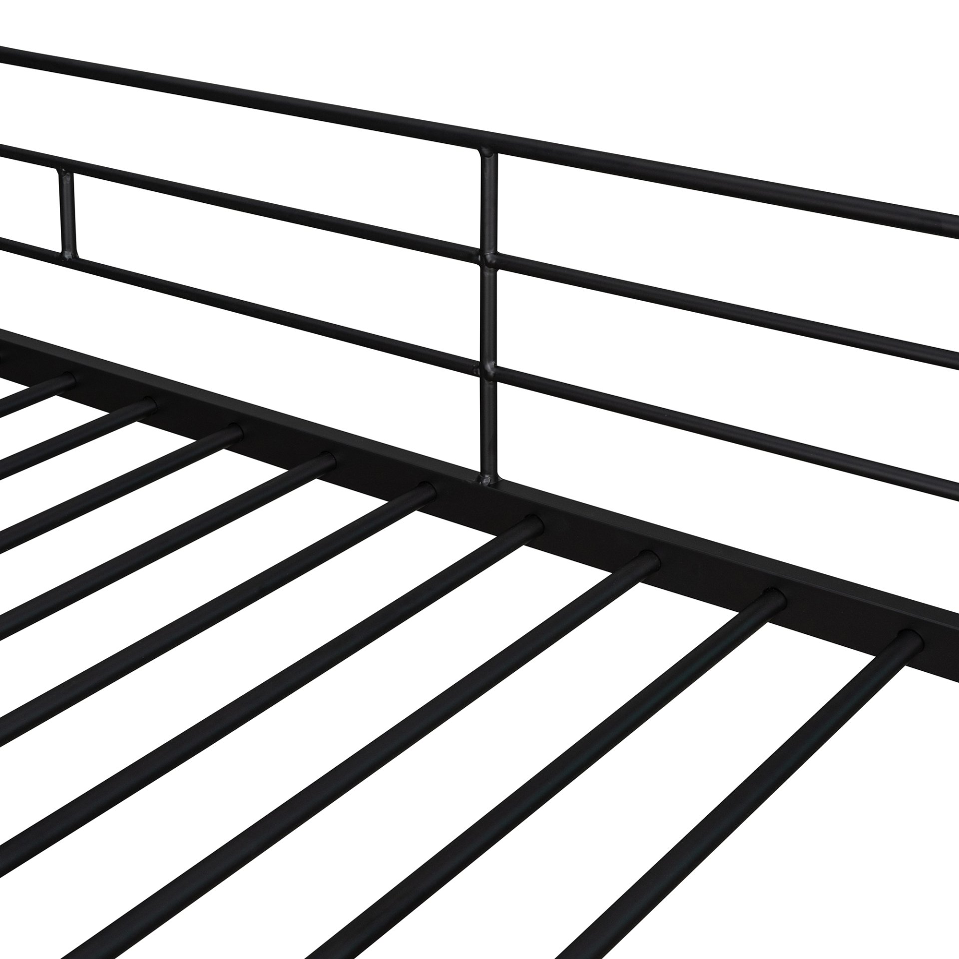 Safety Features: It features a full-length guardrail and many secured heavy-duty metal slats for added security. No foundation or box spring is needed.