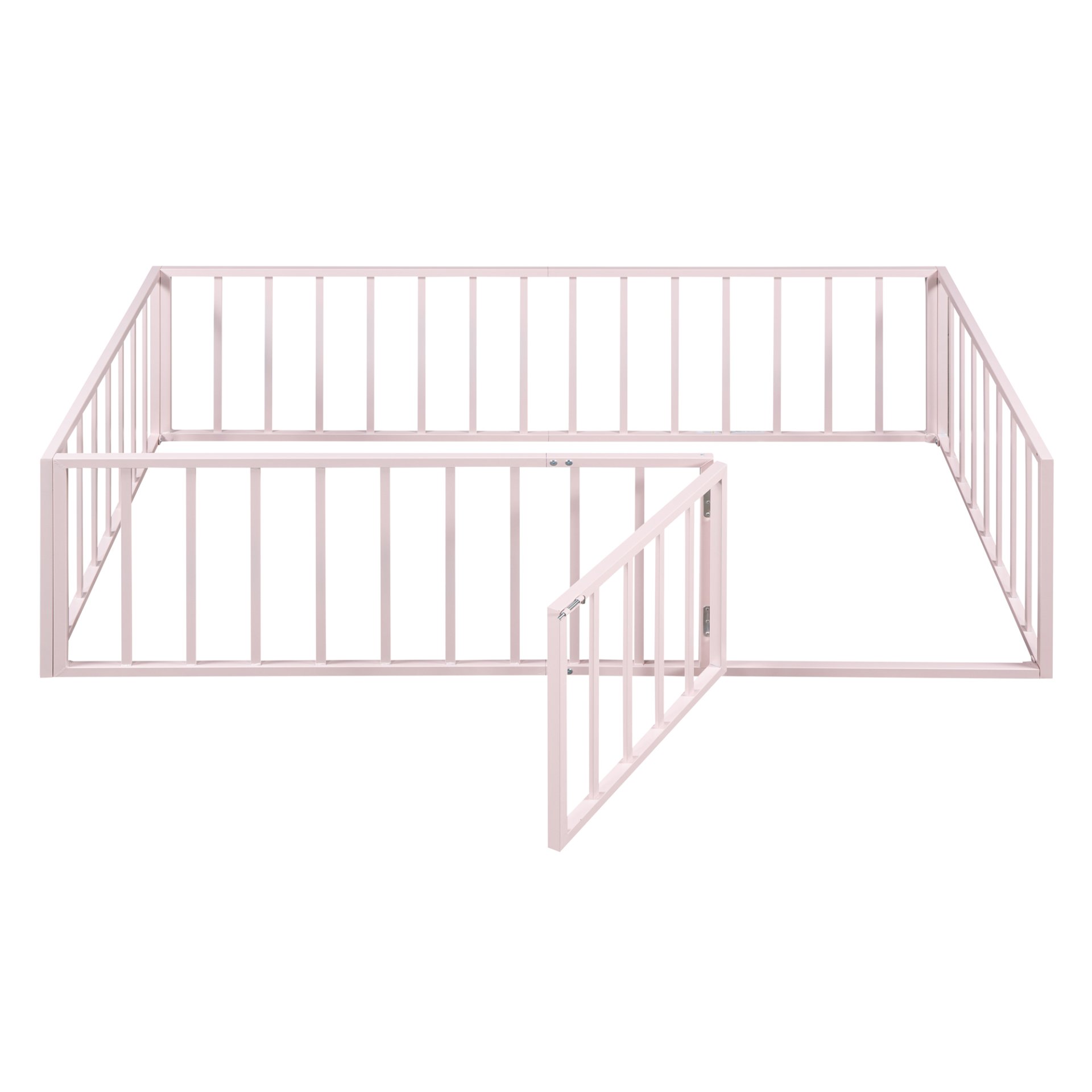 Fun Design: This metal floor bed frame features a circle of fencing and a small door that can be opened and closed, adding interest to the bed and creating a safer sleeping space.
