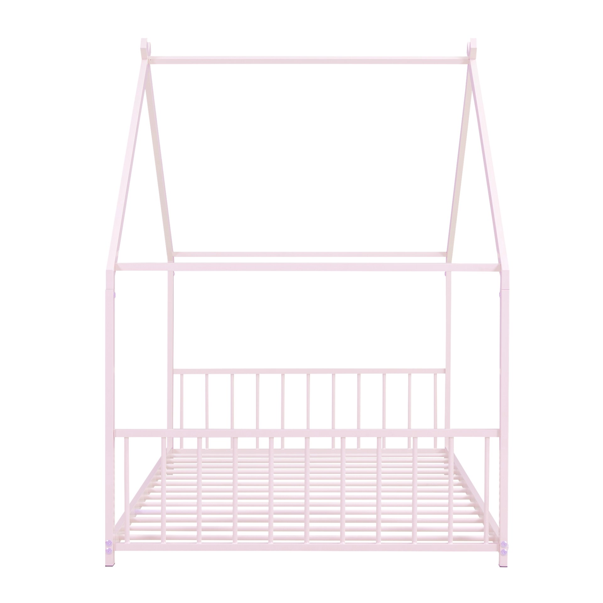 Featuring roof, this bed doubles as a semi-enclosed play place perfect for kids to study, watch TV or explore their imaginations.The contemporary style and neutral finish blend smoothly with any color scheme, allowing this design to shine! With roof and a sturdy metal frame, this bed offers a safe space for your kids to get a good night's sleep.