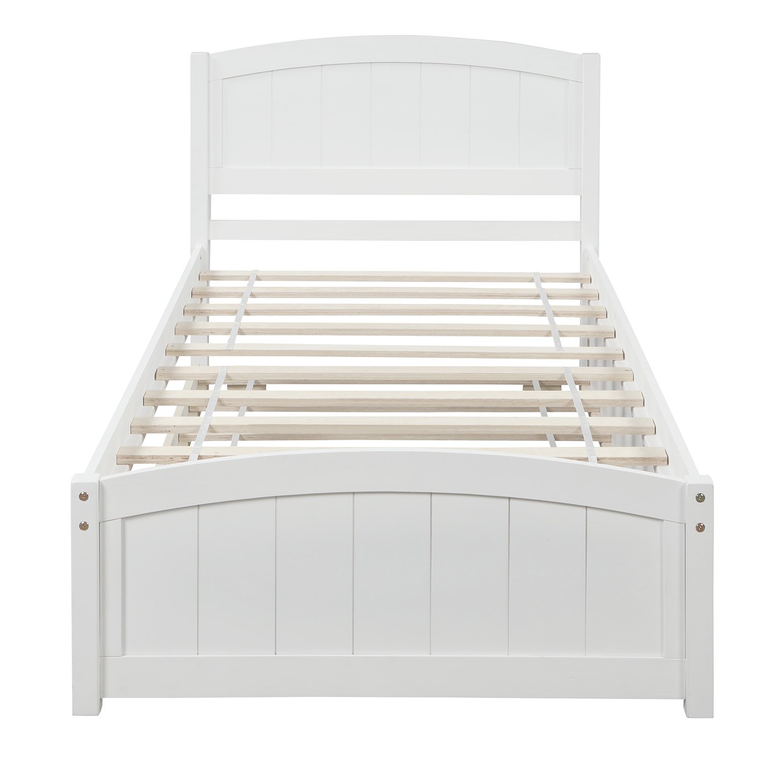 This Wood Platform Bed with Trundle is a minimalistic, stylish bed frame that works well with a variety of decorating styles and makes it easy for you to enhance and improve your space. Featuring strong, solid pine wood and ten supporting slats, this bed is built to last, ensuring it will accompany you for many years. The beautiful white finish lends an elegant look makes this bed frame an excellent addition to any bedroom, do not miss the chance take it home today.