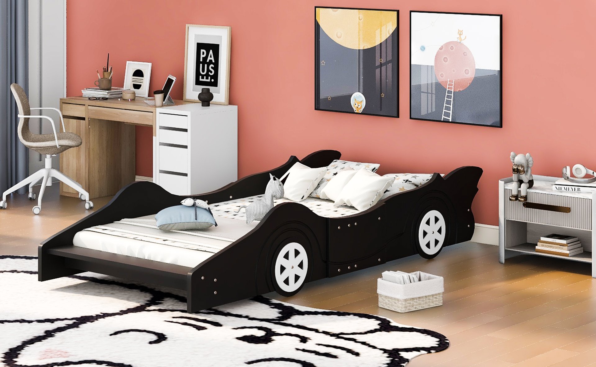 Unique Design: This bed features an appealing race car design and solid construction, making it a real eye-catcher in your bedroom. Available in 2 sizes and 3 colors, there’s always one that will perfectly match your bedroom decor.