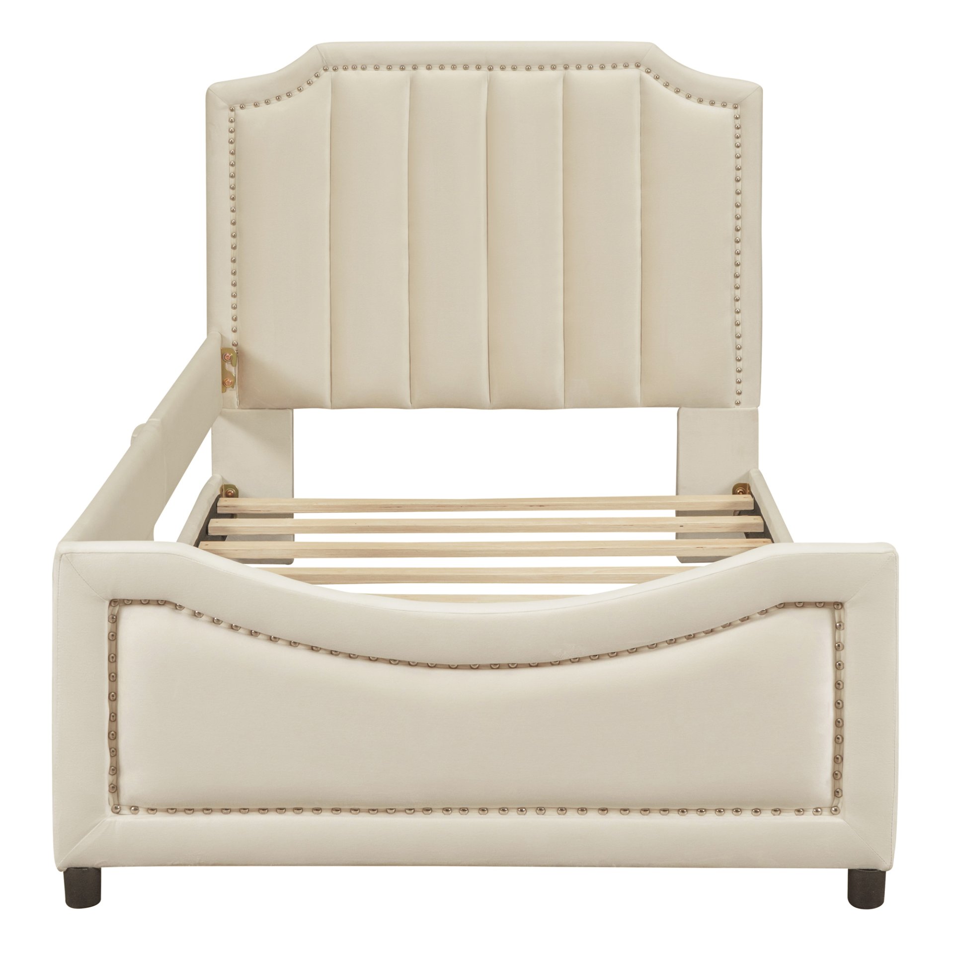 Lively Color: Perfect for your little one's bedroom, this twin daybed showcases lively color upholstery with a playful scalloped silhouette, creating a look that both you and your child will love.