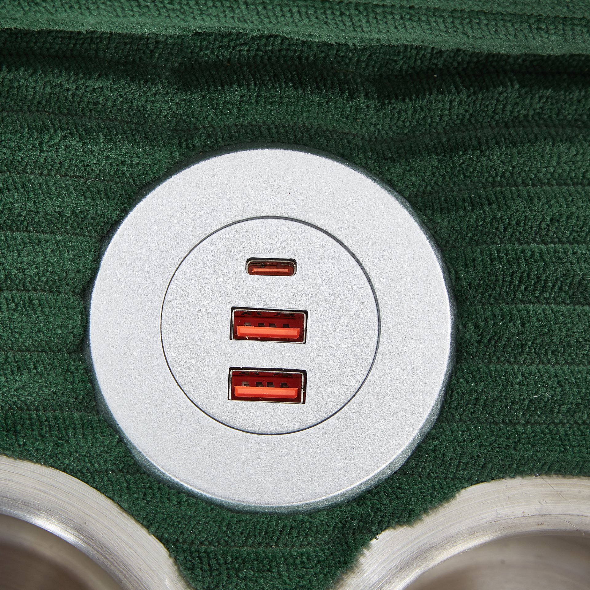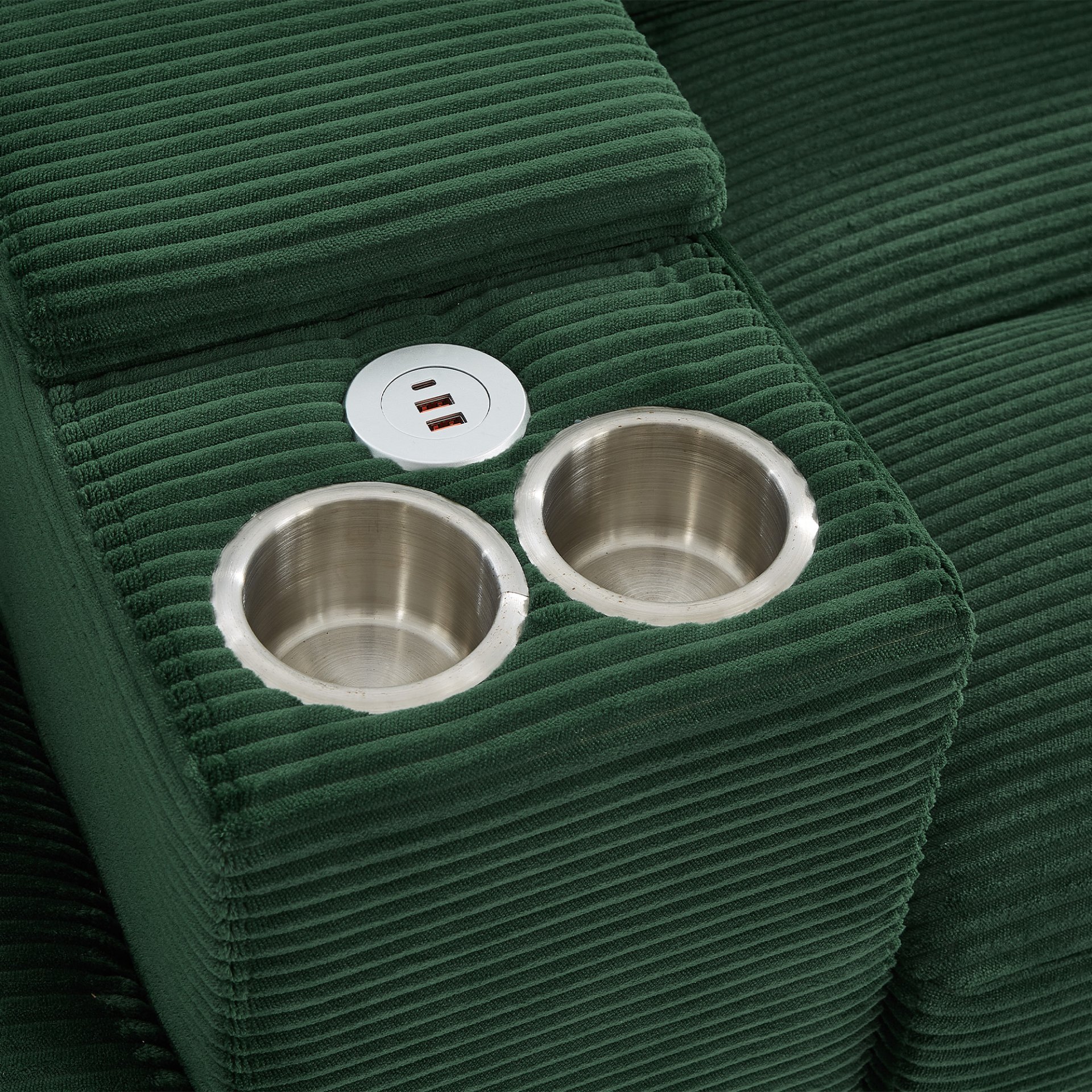 • Built-in Center Console: Includes storage, dual cup holders, and three USB ports for convenient device charging.