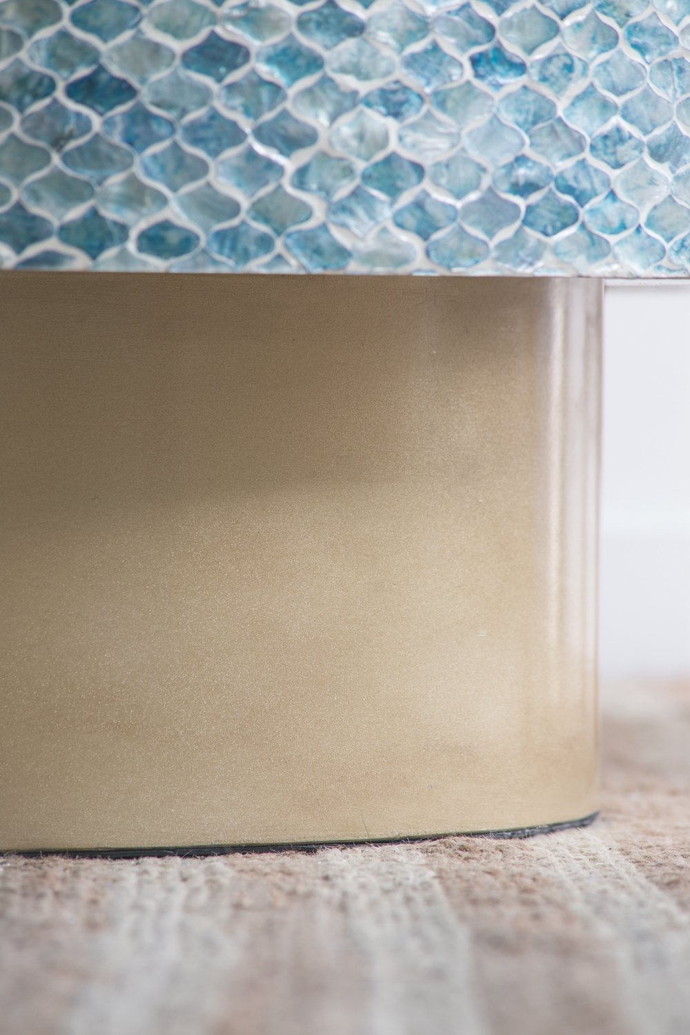 • Eye-catching Design: Features a beautiful capiz inlay design with a gold pedestal base, adding drama and functionality to your living room.