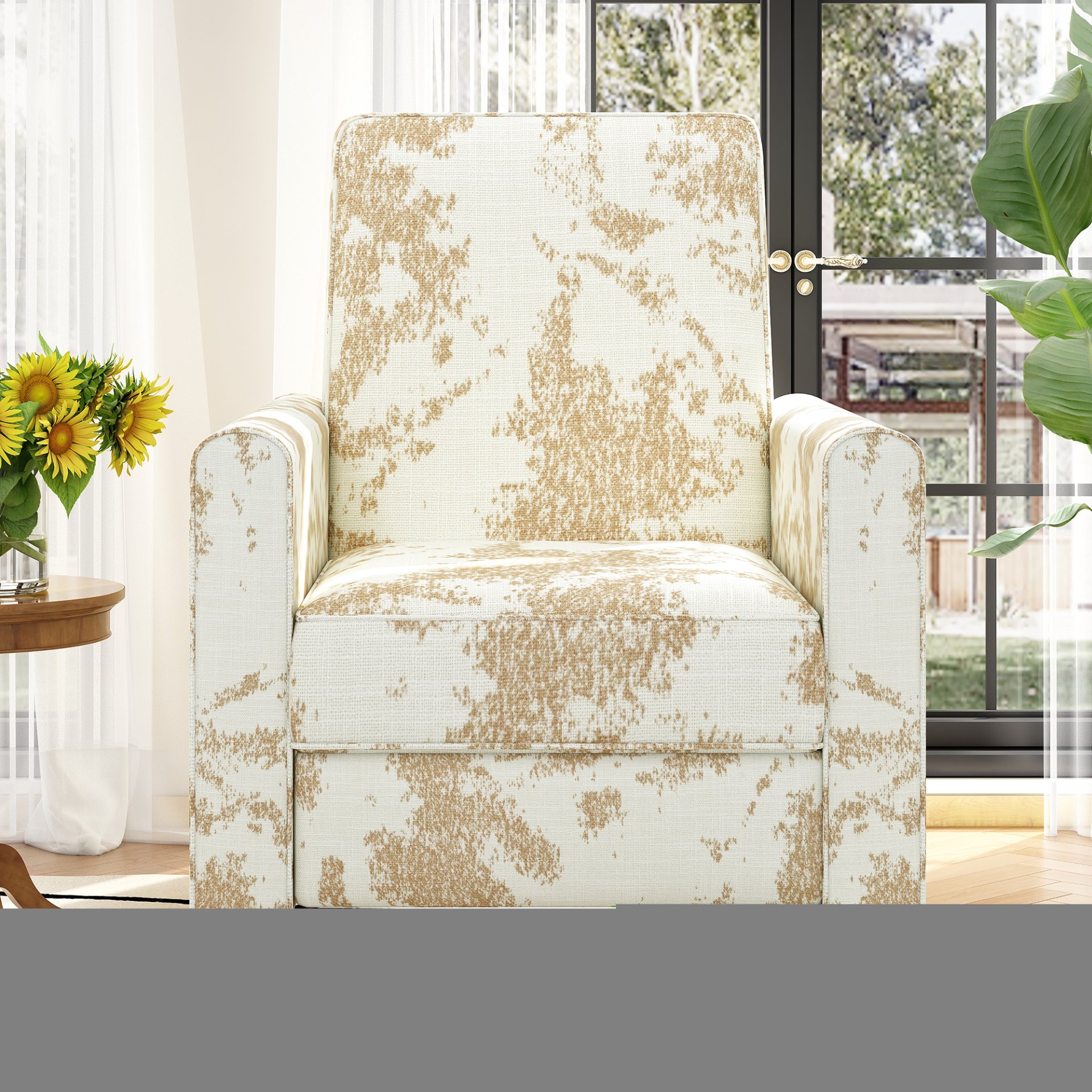 • Printed Fabric Upholstery: Distinctive designs add personality and flair, making it an eye-catching addition to any room.