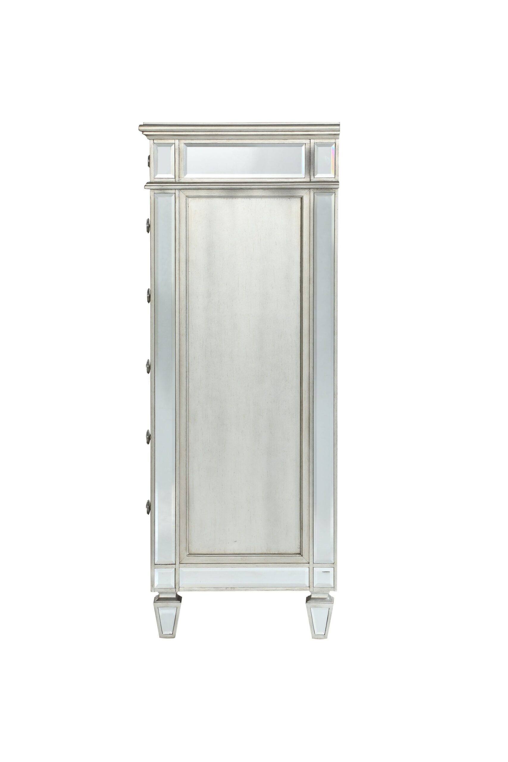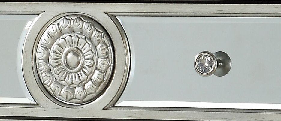 • Sturdy Construction: Built with crystal-like knobs and a wooden case frame of mirror inlay, poplar wood, MDF, and ply, it stands elegantly on mirrored tapered legs.