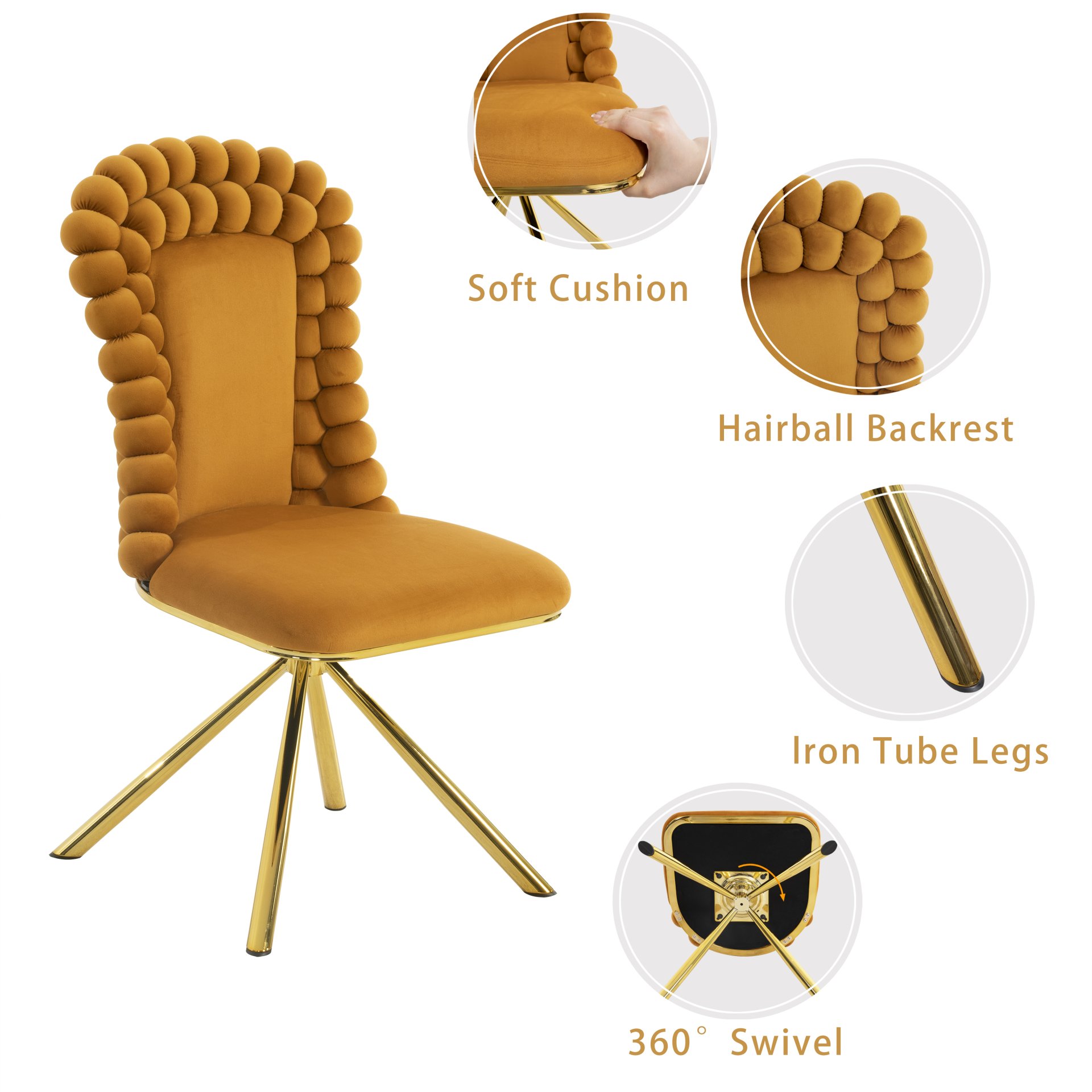 • Elegant Design: Curved ball-shaped backrest with gold metal X-legs creates a refined look that enhances any room's décor.