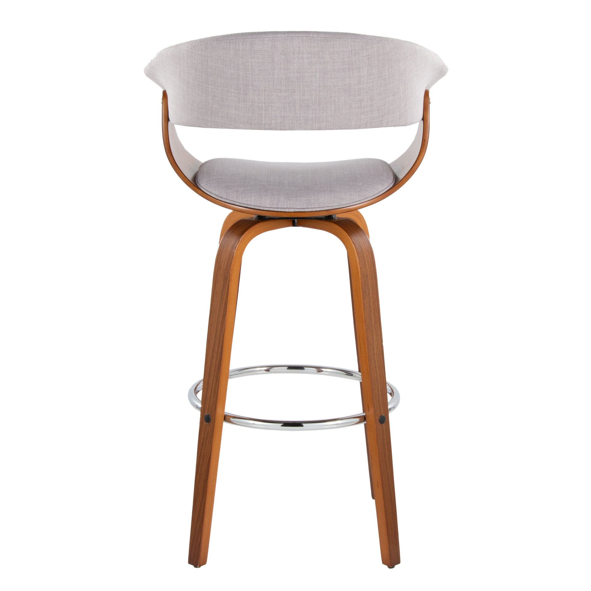 • Construction and Materials: The bar stool is constructed with stylish fabric upholstery and bent wood legs. It is built for indoor use with a weight limit of 250 lbs. per stool.